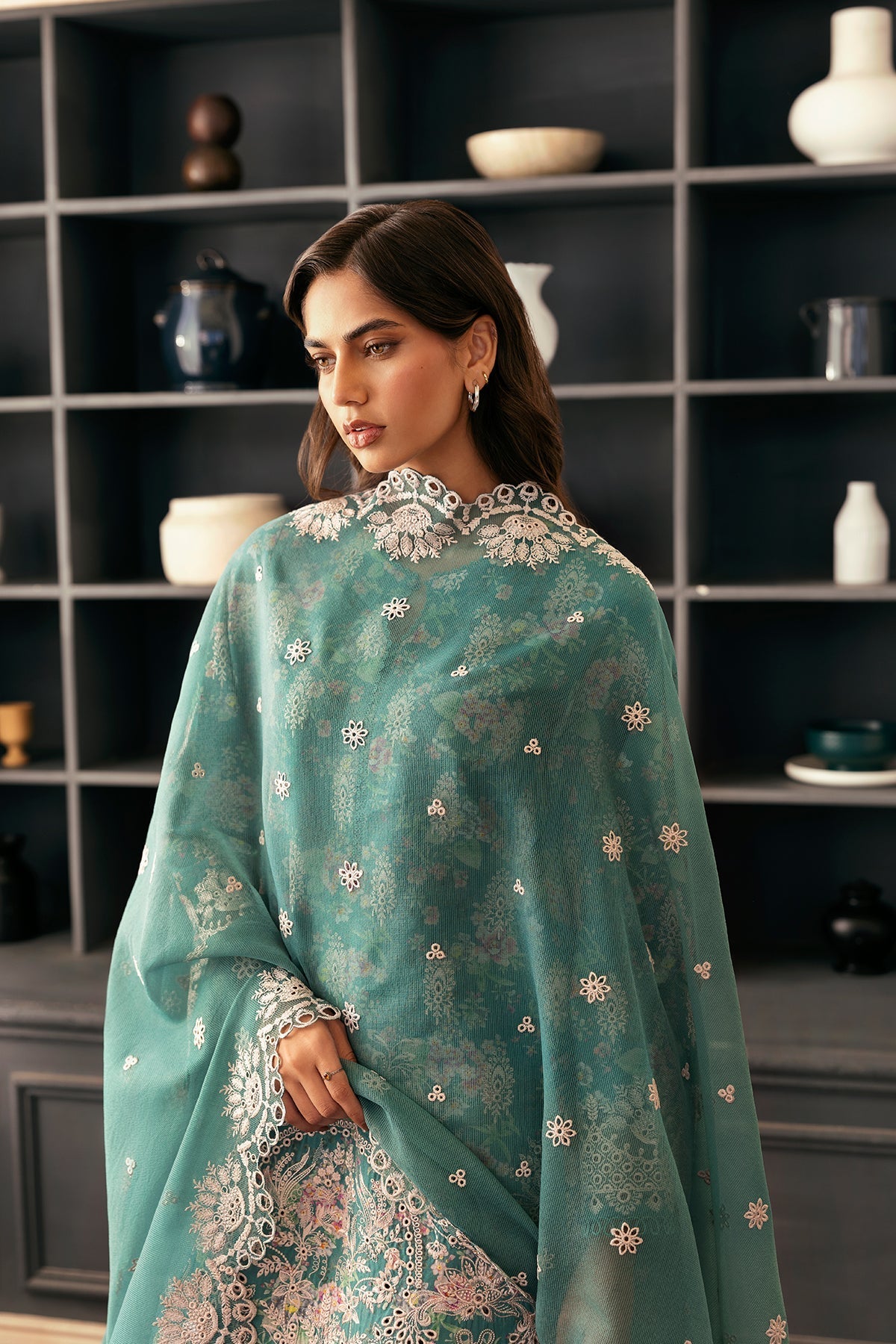 Summary: Introducing the Afrozeh Day Break Lawn – Breeze Bathed, a captivating Pakistani suit designed for everyday elegance. This unstitched three-piece ensemble features a sea green digitally printed lawn kameez adorned with exquisite embroidery. The intricate floral patterns add a touch of feminine charm to the soothing sea green base. Crafted from high-quality lawn, the kameez promises breathability and comfort, making it ideal for warm weather. The accompanying cotton net dupatta, also in a complementary sea green shade, is embellished with embroidery, adding a layer of graceful sophistication to the overall look. The digitally printed cotton trousers perfectly complement the kameez, completing this effortlessly chic ensemble. Perfect for daily wear, this suit is a testament to Afrozeh's commitment to quality and design. The Breeze Bathed collection exudes a sense of refreshing lightness, perfect for embracing the warmer months. This unstitched suit allows you to customize the fit and style to your liking, making it a versatile addition to your wardrobe. Experience the perfect blend of comfort, style, and sophistication with this must-have Pakistani suit.