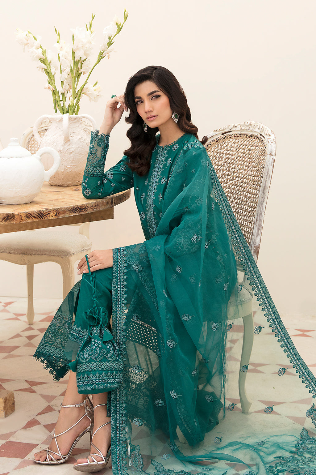 Fabric: LAWN EMBROIDERED FRONT RIGHT PANEL (1PC) LAWN EMBROIDERED FRONT LEFT PANEL (1PC) LAWN EMBROIDERED BACK (0.98M) LAWN EMBROIDERED SLEEVES (0.66M) ORGANZA EMBROIDERED SLEEVES BORDER (0.98M) ORGANZA EMBROIDERED FRONT+BACK BORDER A (1.97M) ORGANZA EMBROIDERED FRONT+BACK BORDER B (1.97M) ORGANZA EMBROIDERED DUPATTA PALLU BORDER (2PCS) ORGANZA EMBROIDERED TROUSER BORDER (0.98M) ORGANZA EMBROIDERED DUPATTA (2.62M) COTTON DYED TROUSER (2.28M) |