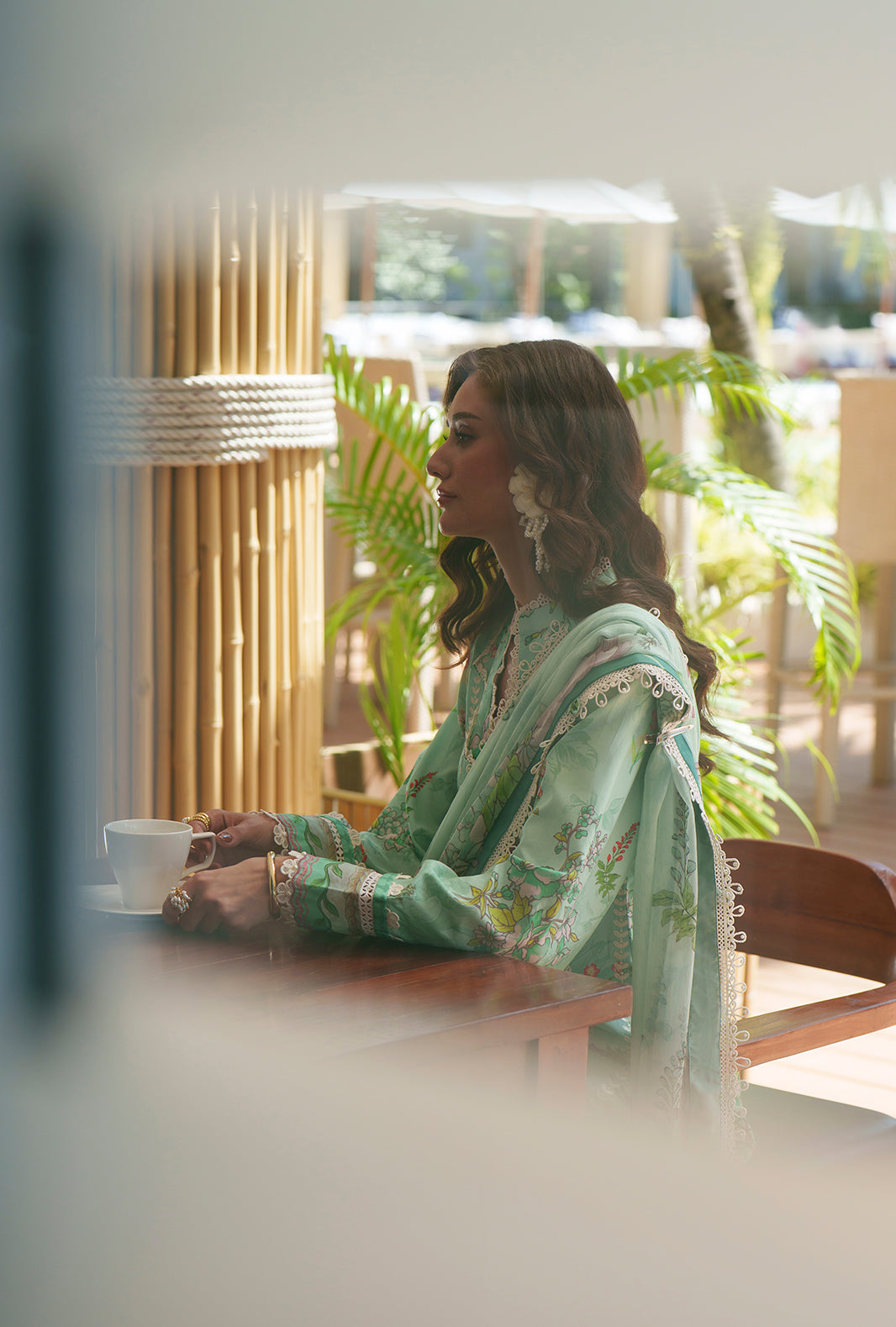 Summary: Experience the epitome of summer grace with this Sea Green Chikankari Lawn Pakistani Suit by AJR Couture. The Eliya ensemble features a premium lawn kameez adorned with intricate Chikankari embroidery and delicate floral prints, perfectly capturing the essence of the season. Paired with a feather-light printed chiffon dupatta and comfortable dyed cotton trousers, this 3-piece dress offers a refined look for any occasion. The soothing sea green hue is refreshing and stylish, making it an excellent choice for Eid celebrations, daytime gatherings, or sophisticated party wear. Its breathable fabric ensures comfort during warm days while the embroidered details add a touch of luxury. Elevate your ethnic wardrobe with this stunning Pakistani lawn dress. Shop online today for a timeless summer outfit.