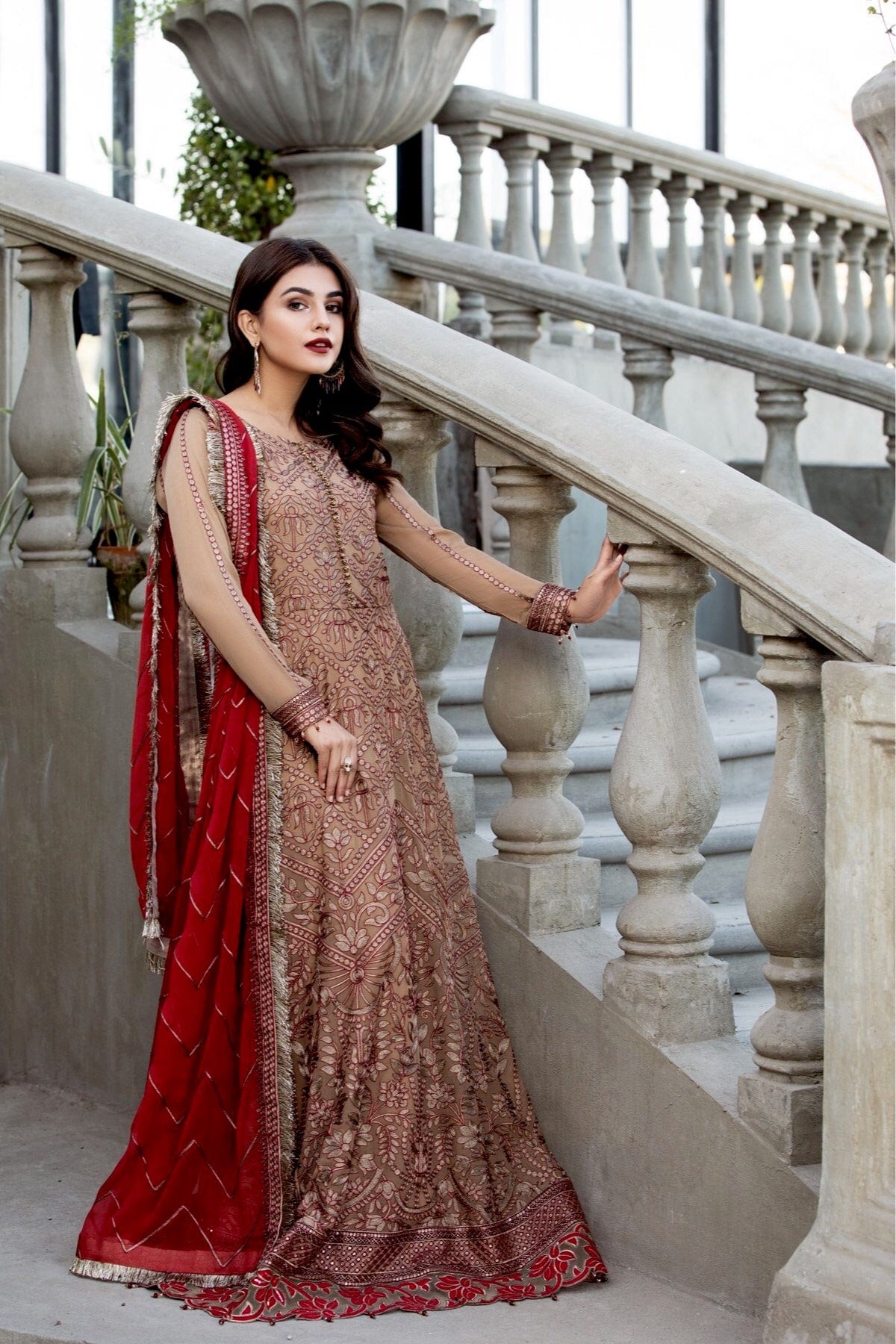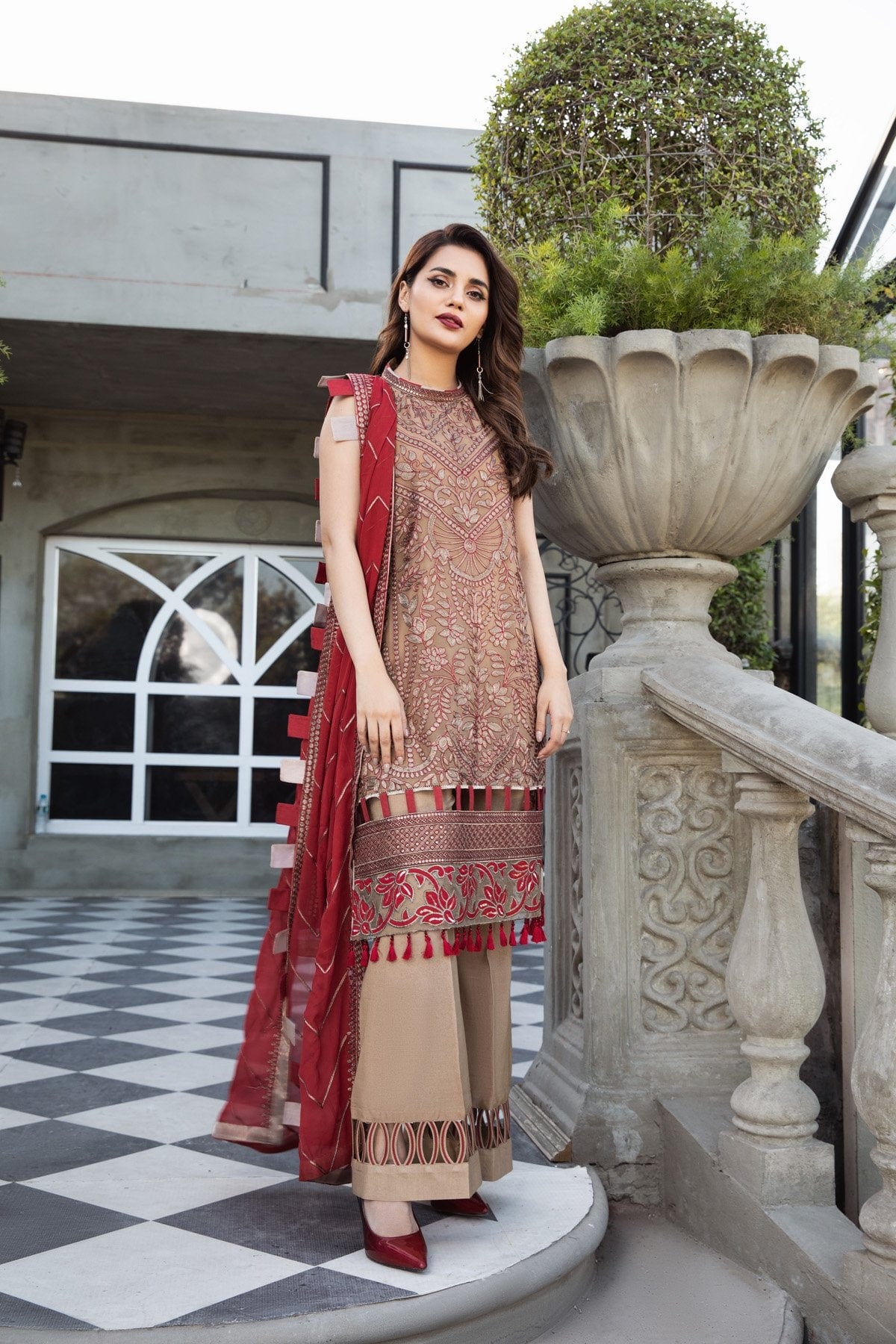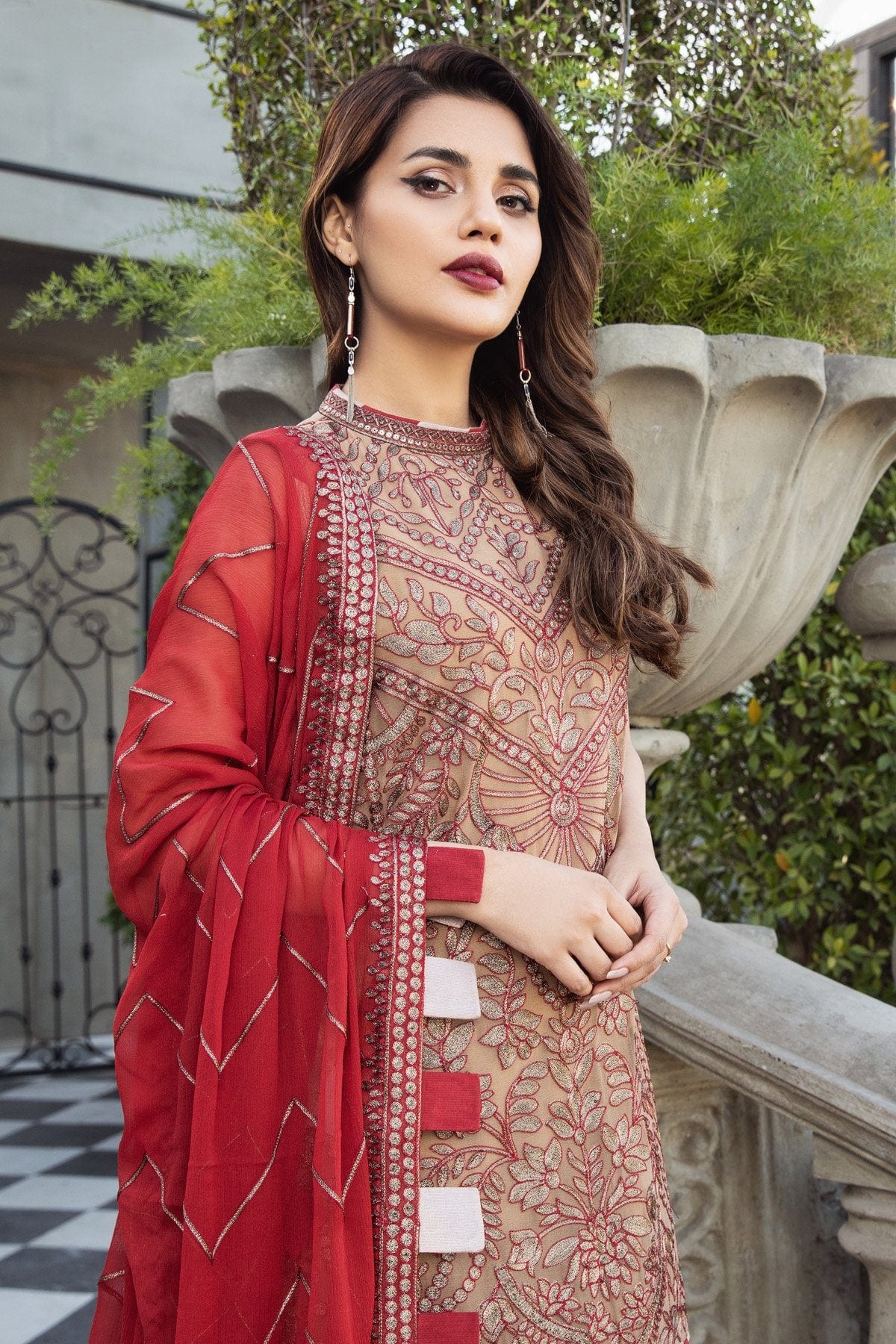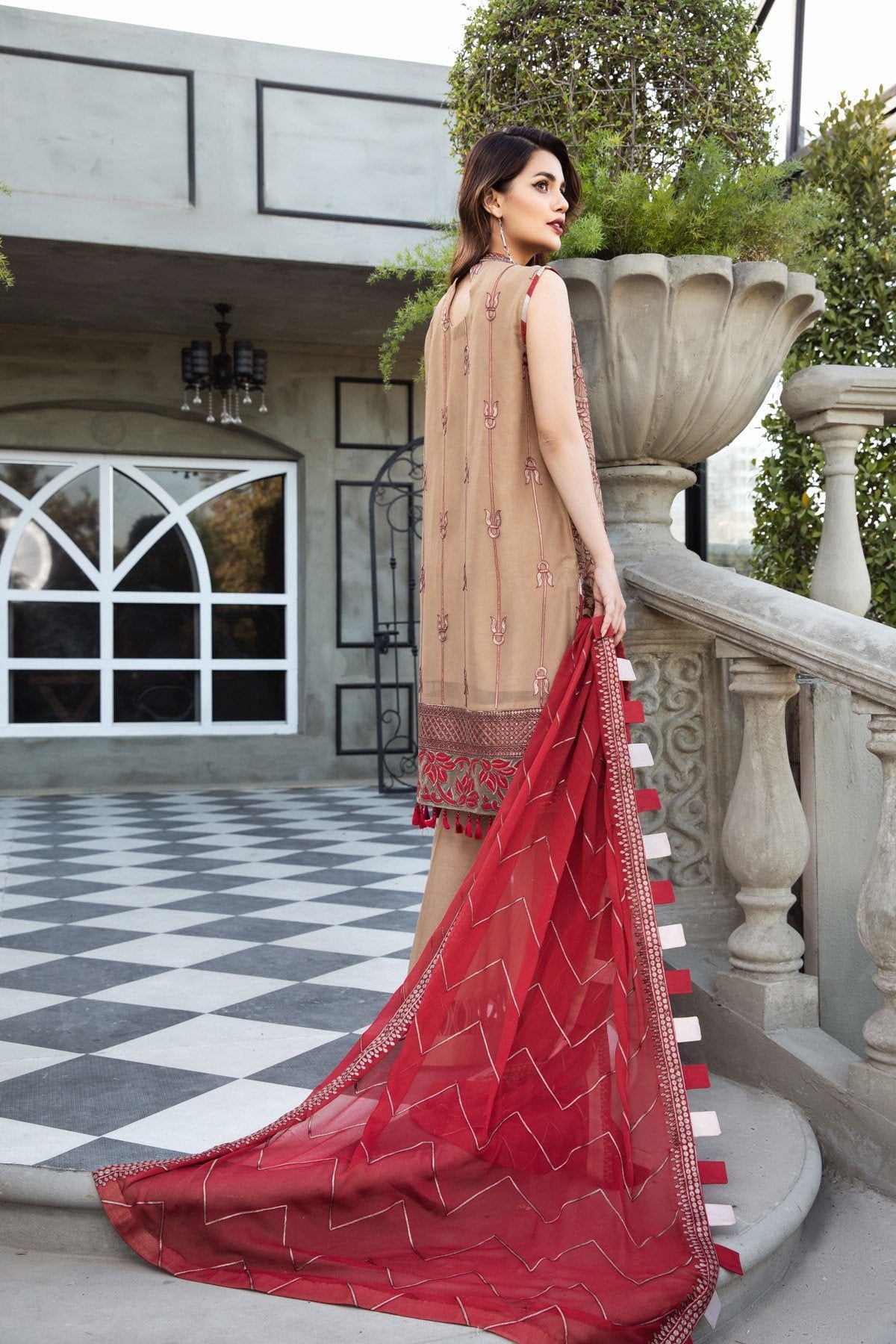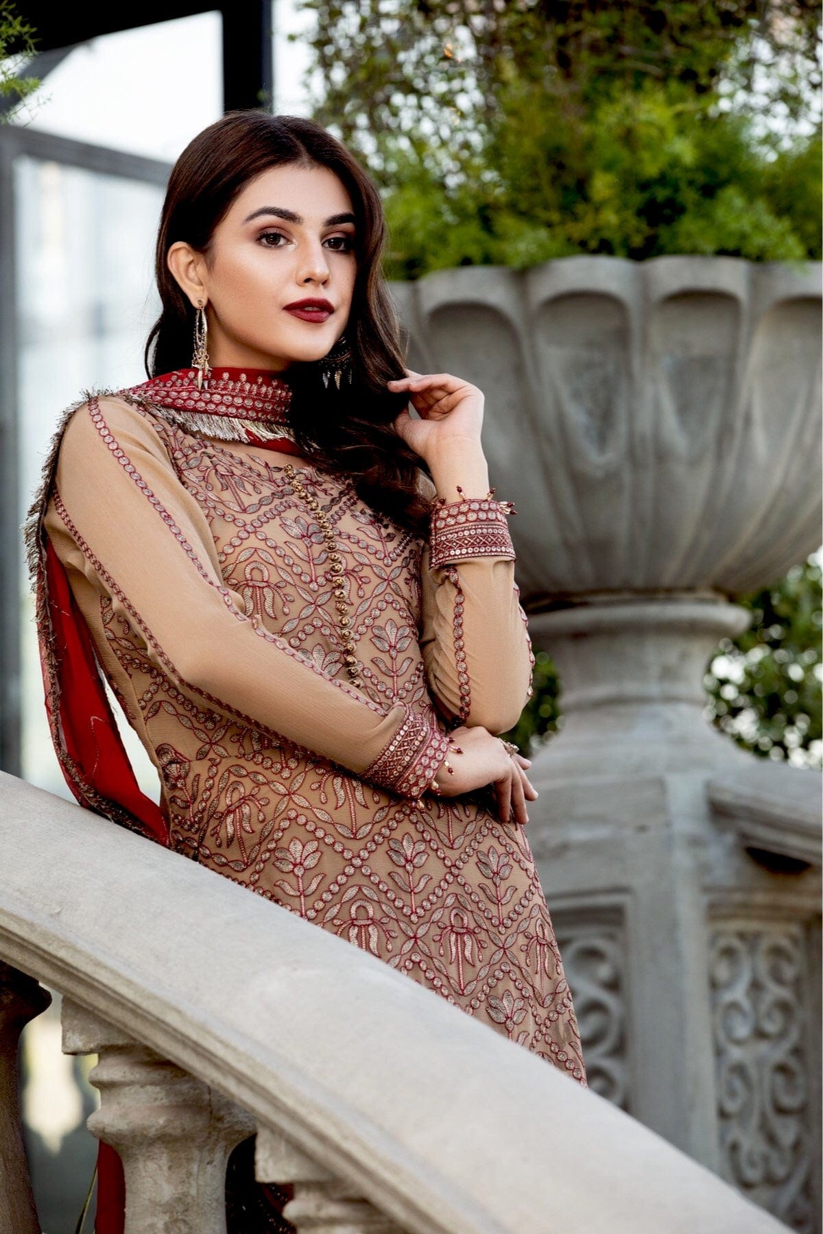 Fabric: Embroidered Chiffon Front Embroidered Chiffon Back Embroidered Chiffon Sleeves Embroidered Front (2) + Back (2) + Sleeves Patch Embroidered Chiffon Dupatta Raw Silk Trouser` |