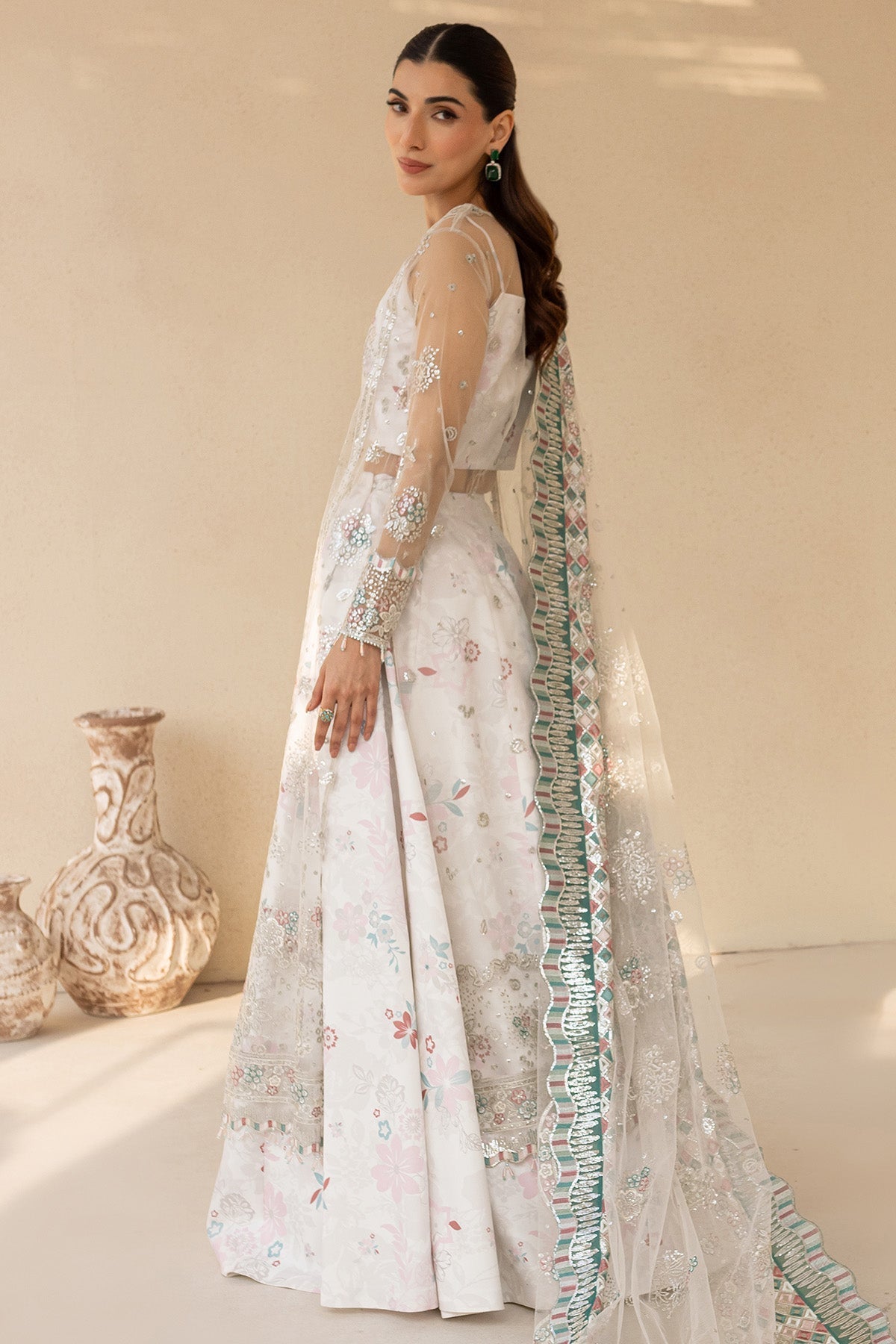 Summary: Embrace ethereal elegance with the Farasha Lu-Zella 'Moonlight Mist' Pakistani suit. This formal ensemble features a stunning off-white kameez crafted from delicate embroidered net, offering a graceful and airy feel perfect for Spring/Summer festivities. The intricate embroidery across the net fabric adds a layer of luxury and sophistication, making it an ideal choice for significant cultural events. This Pakistani dress exudes a timeless charm, making it a perfect outfit for wedding guests or for serene Nikah ceremonies. Shop this exquisite piece of ethnic wear for a truly captivating look at your next grand occasion.
