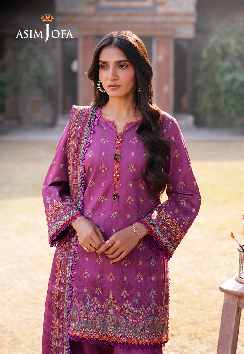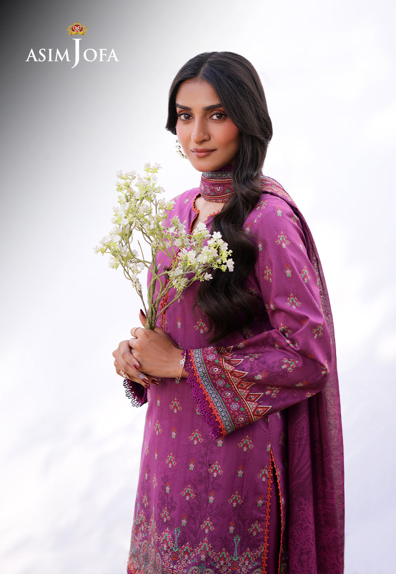 Fabric: Simplify your style with this purple ensemble, featuring minimalist motifs that highlight the beauty of subtlety. Paired with a complementing dupatta, this design exudes effortless sophistication. DESIGN DETAILS: 2.8-meter digital printed lawn shirt 2.4-meter digital printed lawn dupatta 2.5-meter dyed cambric trouser |