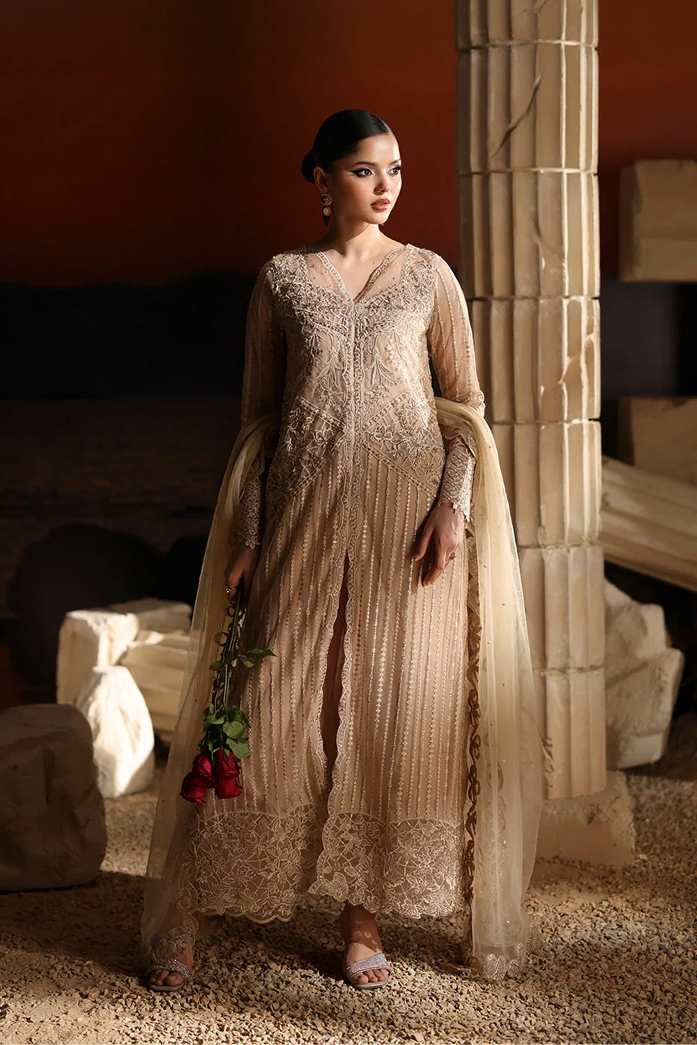 Summary: Exude timeless sophistication with this Azure Luxe Pakistani Suit in a soft Beige hue. Crafted from luxurious Net fabric ideal for Spring/Summer events, this formal dress features a long kameez with delicate sequin detailing for a hint of shimmer. The elegant silhouette and heavy embellishments make this Pakistani dress a perfect choice for upscale festive moments. The graceful beige tone is wonderfully suited for Nikah ceremonies or as a refined wedding guest outfit. This ethnic wear ensemble is a fusion of modern grace and classic allure, making it ideal for creating an unforgettable impression at any formal gathering.
