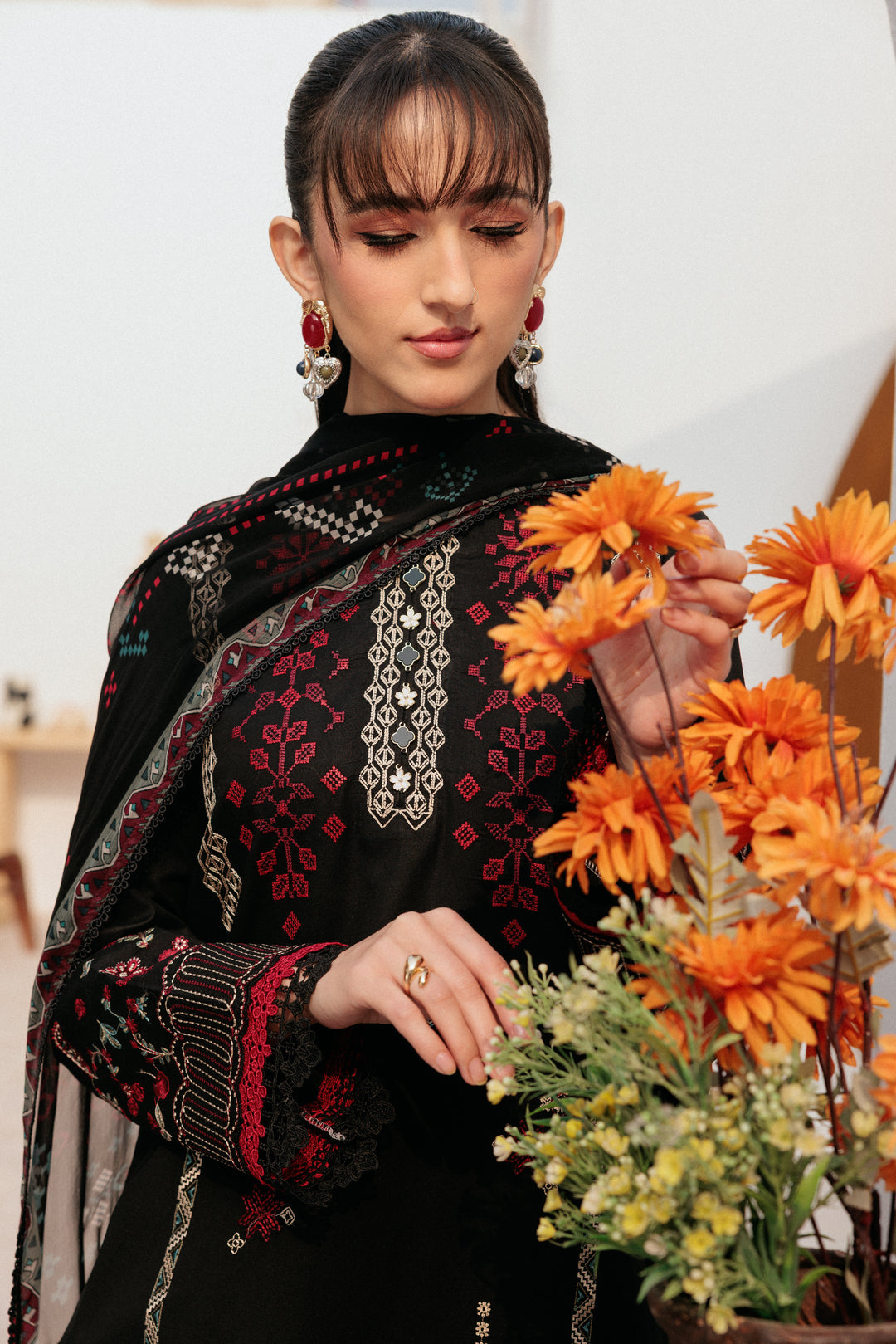 Summary: Embrace timeless elegance with this stunning black Pakistani Lawn suit from Florent's Summer collection. This unstitched ethnic wear is crafted from premium lawn, a lightweight and breathable fabric perfect for the warmer months. The kameez features exquisite embroidery on the front, sleeves, and a separate border for the hem, creating a sophisticated and formal look. Paired with a digitally printed Bamber Chiffon dupatta, this summer outfit balances classic style with modern artistry. This versatile Pakistani dress is an ideal choice for formal gatherings, evening parties, or festive celebrations like Eid.