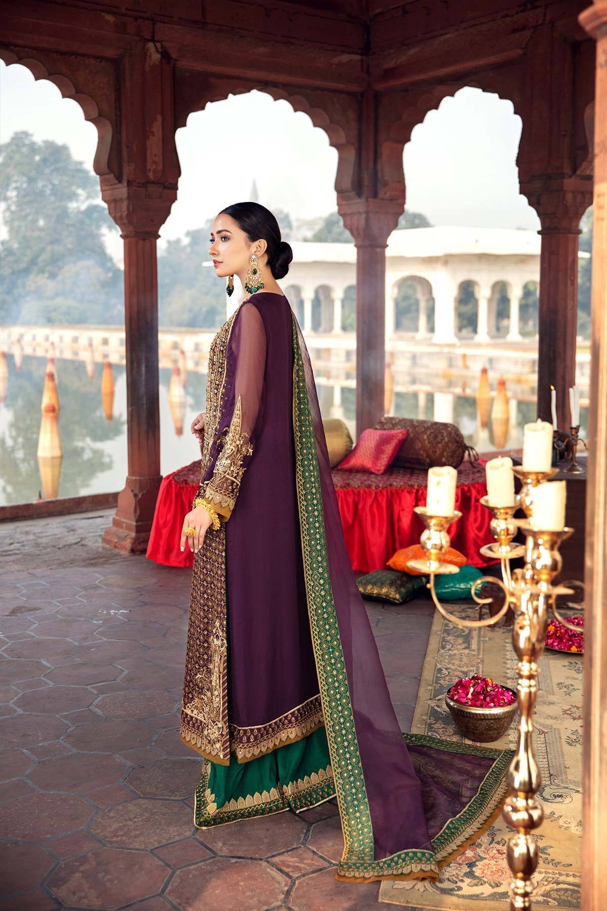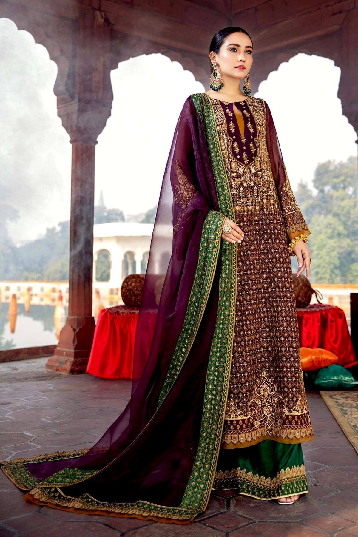 Fabric: Shirt Embroidered + Adda Work Front Chiffon 1 m Embroidered + Adda Work Chiffon Sleeves 26 inches Back Chiffon 1.4 m Embroidered + Adda Work Front Daman Motif 1 Piece Embroidered + Adda Work Back Daman Patti 1 m Inner Shirt 2.25 m Trouser Embroidered Trouser Patti 1.5 m Raw Silk Trouser 2.5 m Duppata Embroidered Organza Duppata 2.5 m |