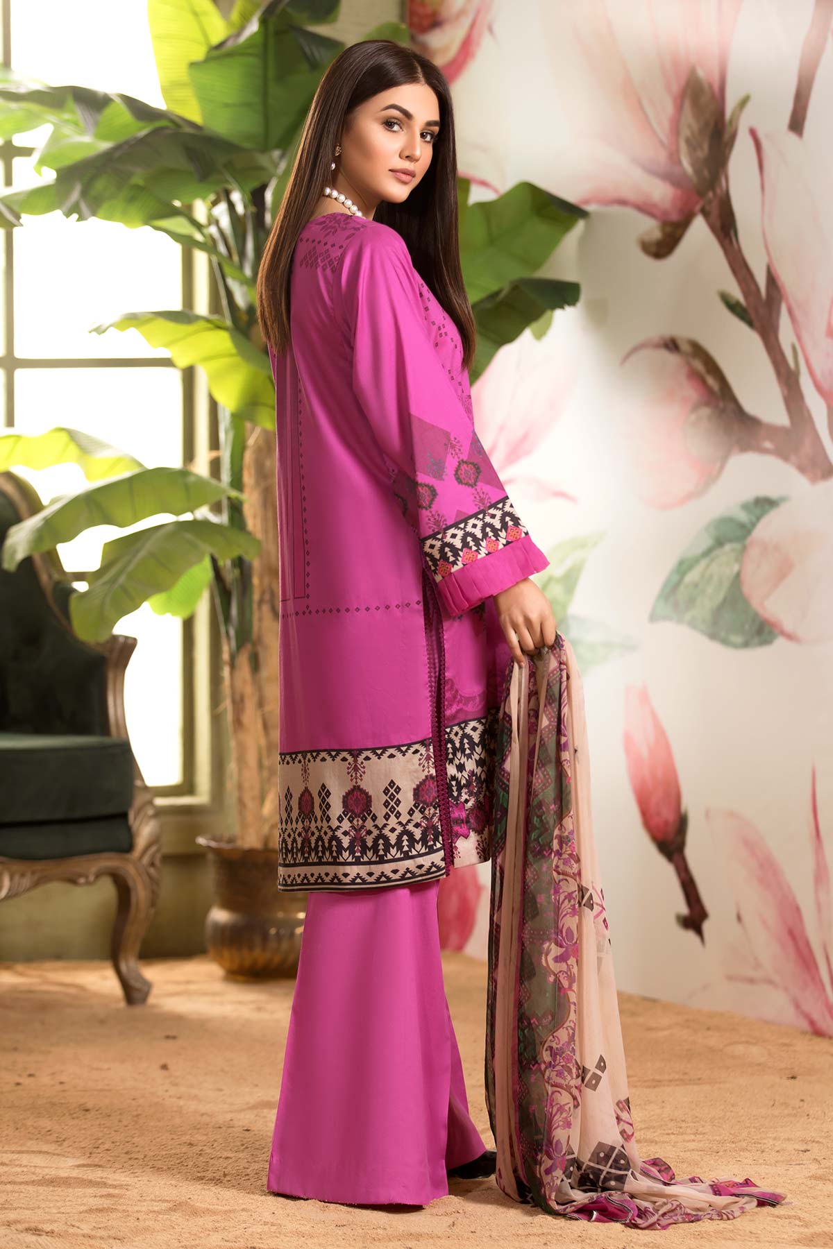 Fabric: Shirt Print Lawn Front +Back & Sleeves 3.4M Embroidered Front Neckline 1Pcs Trouser Cotton Trouser 2.5 m Dupatta Print Chiffon Dupatta 2.5 m |
