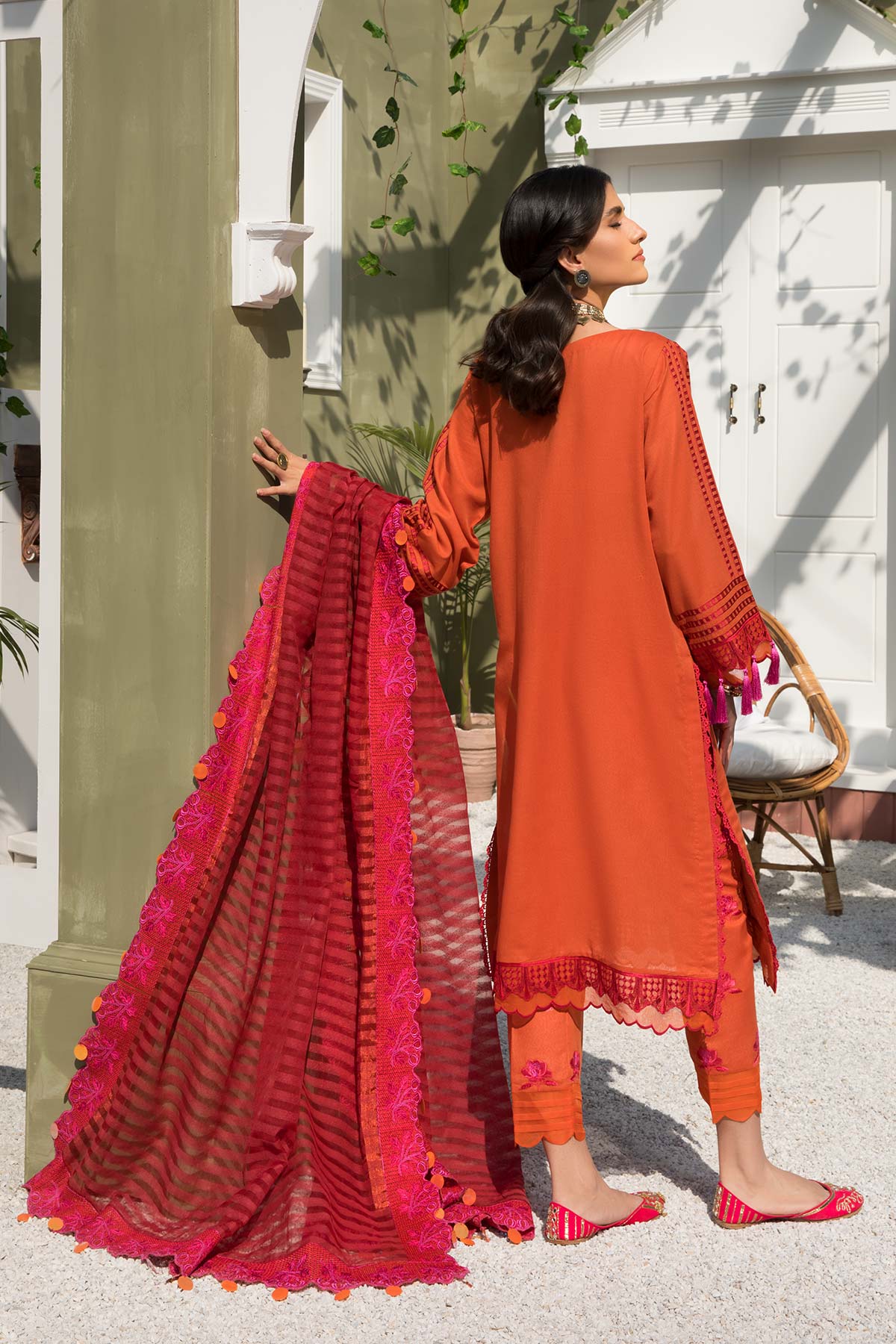 Fabric: Shirt Embroidered Lawn Karandi Front 1.4 m Embroidered Lawn Karandi Sleeves 26 inches Lawn Karandi Back 1.4 m Embroidered Front + Back + Sleeves Patti 2.5 m Trouser Embroidered Karandi Trouser 2.5 m Dupatta Embroidered Dupatta Patti 8 m Organza Karandi Dupatta 2.5 m |