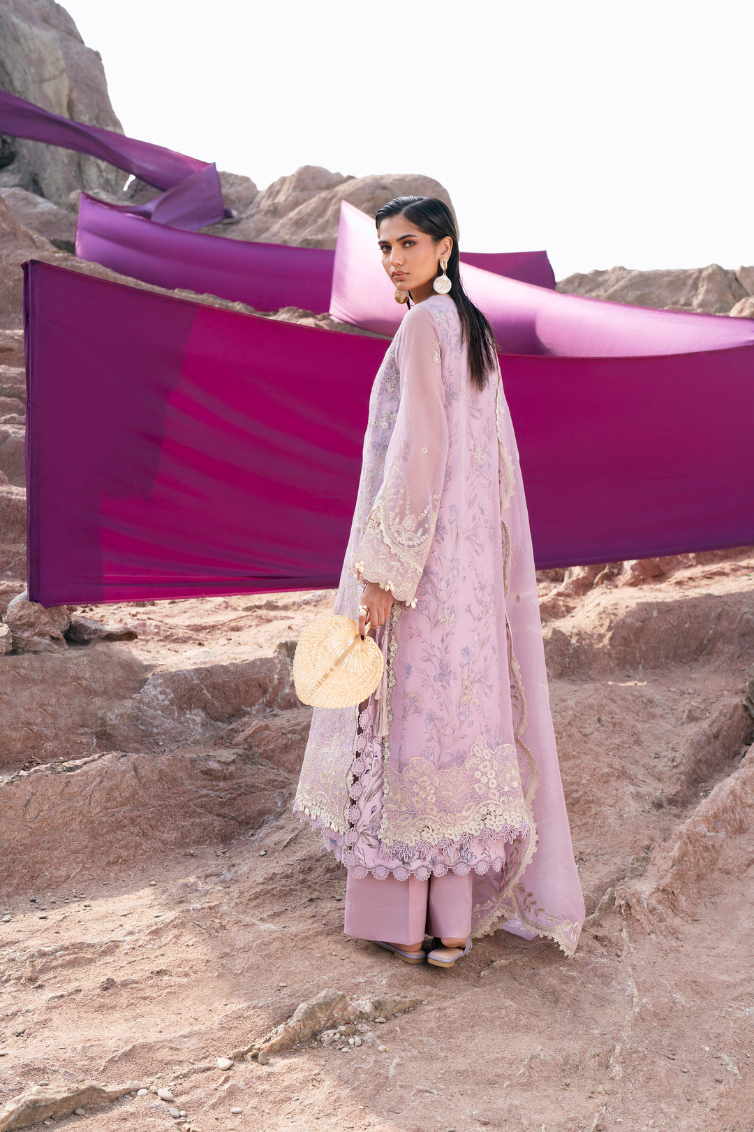Summary: Embrace festive elegance with this stunning Lavender Pakistani suit from the Florent Luxury Lawn collection. Crafted from breathable lawn fabric, this unstitched dress is ideal for Spring/Summer celebrations. The kameez is a canvas of exquisite artistry, featuring detailed embroidery on the front, back, and sleeves, with additional embroidered borders for the hem and slits. This beautiful ethnic wear is complemented by a vibrant digital printed chiffon dupatta, adding a touch of grace. As a sophisticated Pakistani Lawn dress, it is the perfect formal wear for Eid, wedding functions, or any celebratory event.
