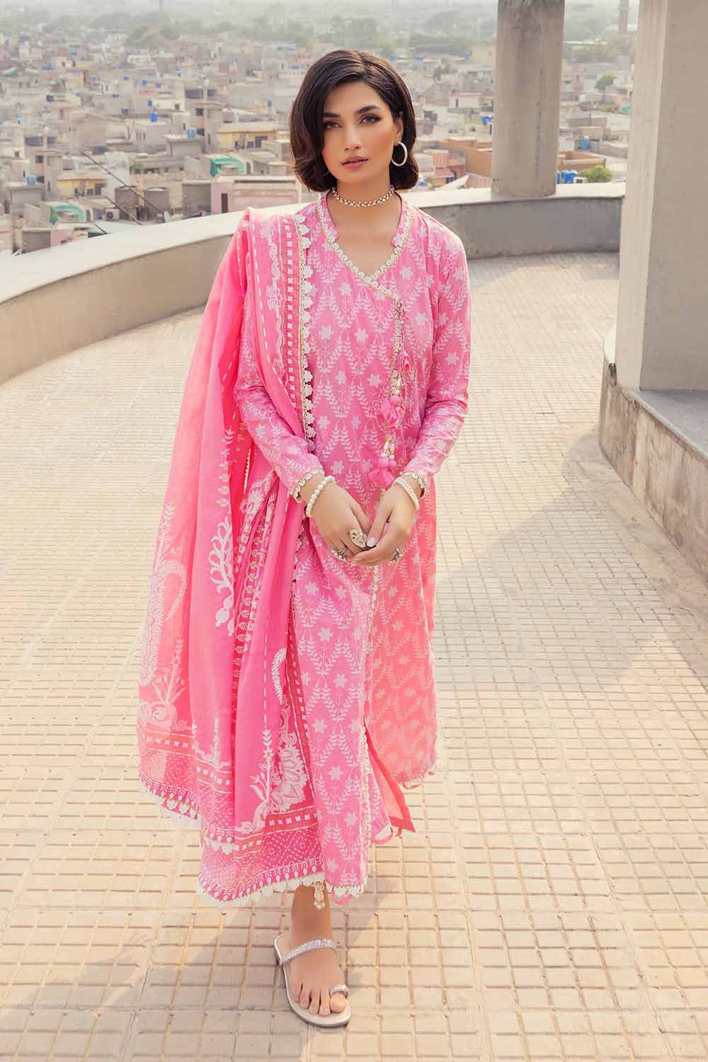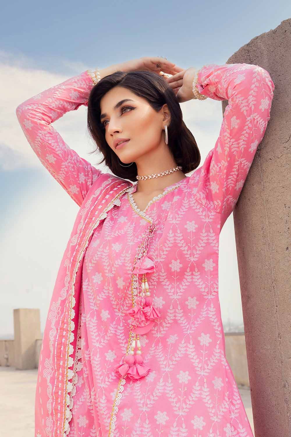 Gul Ahmed Pre-Fall 2023 – 3PC Embroidered Cambric Suit with Gold and Lacquer Denting Lawn Dupatta DN-32096