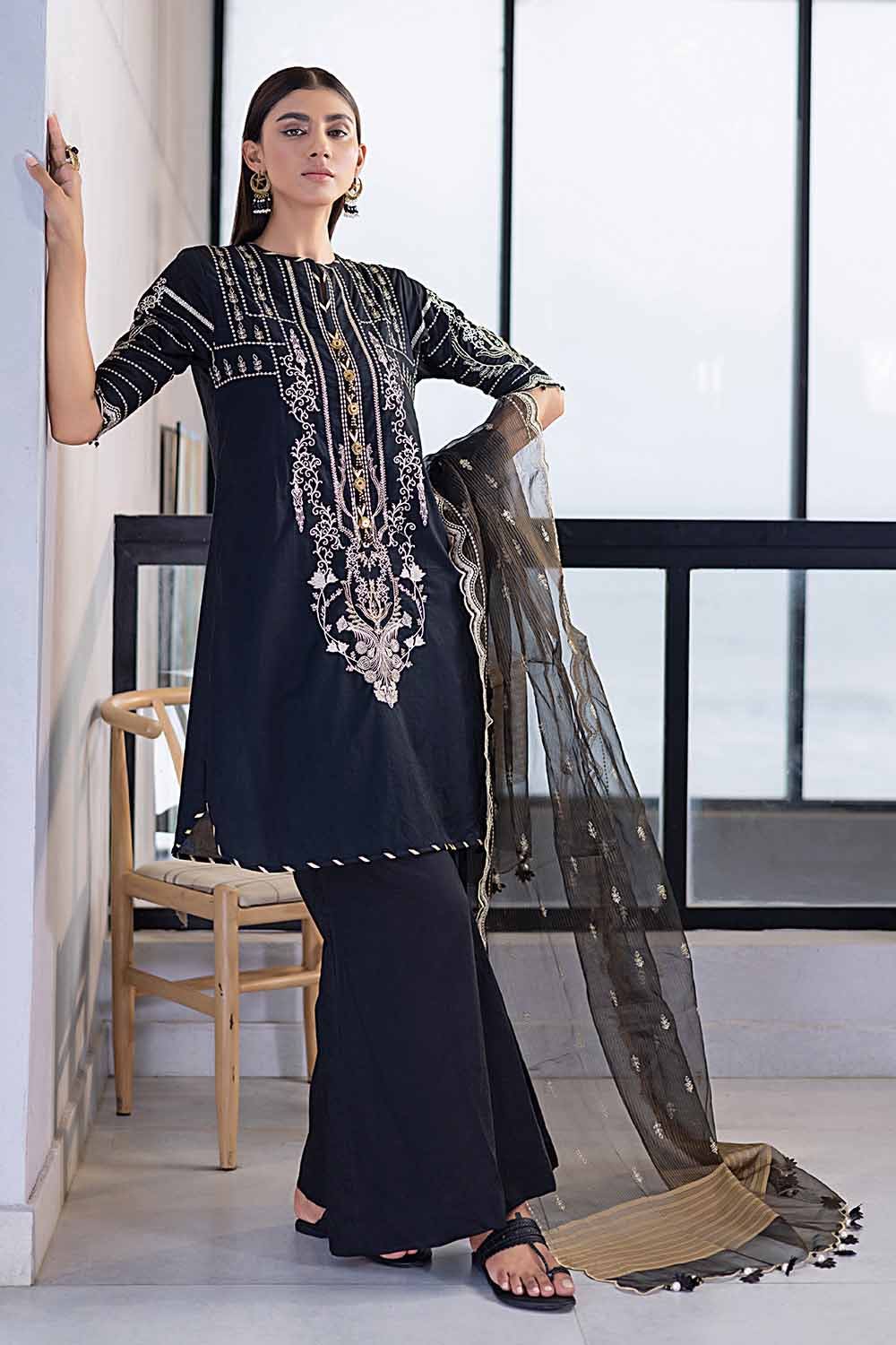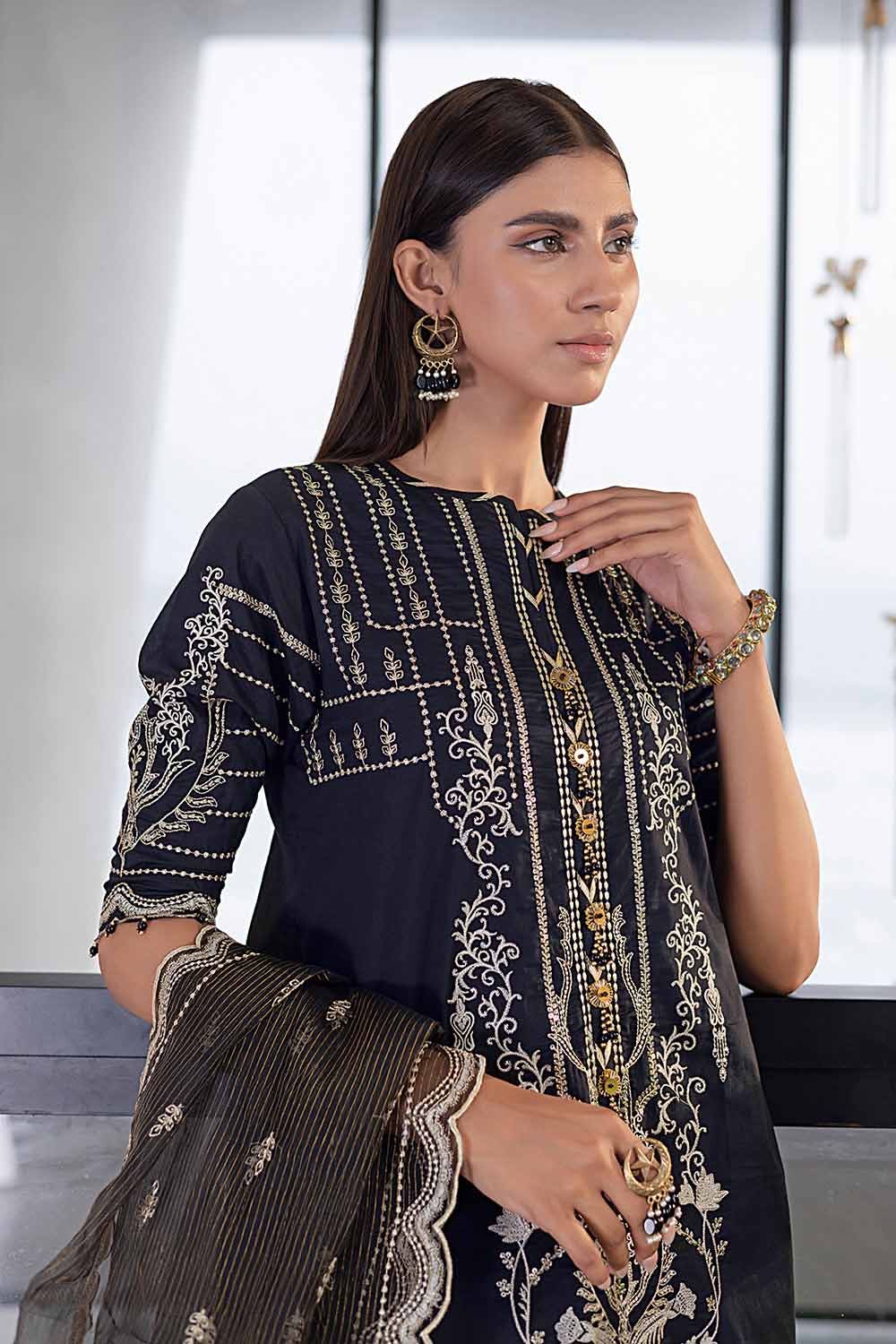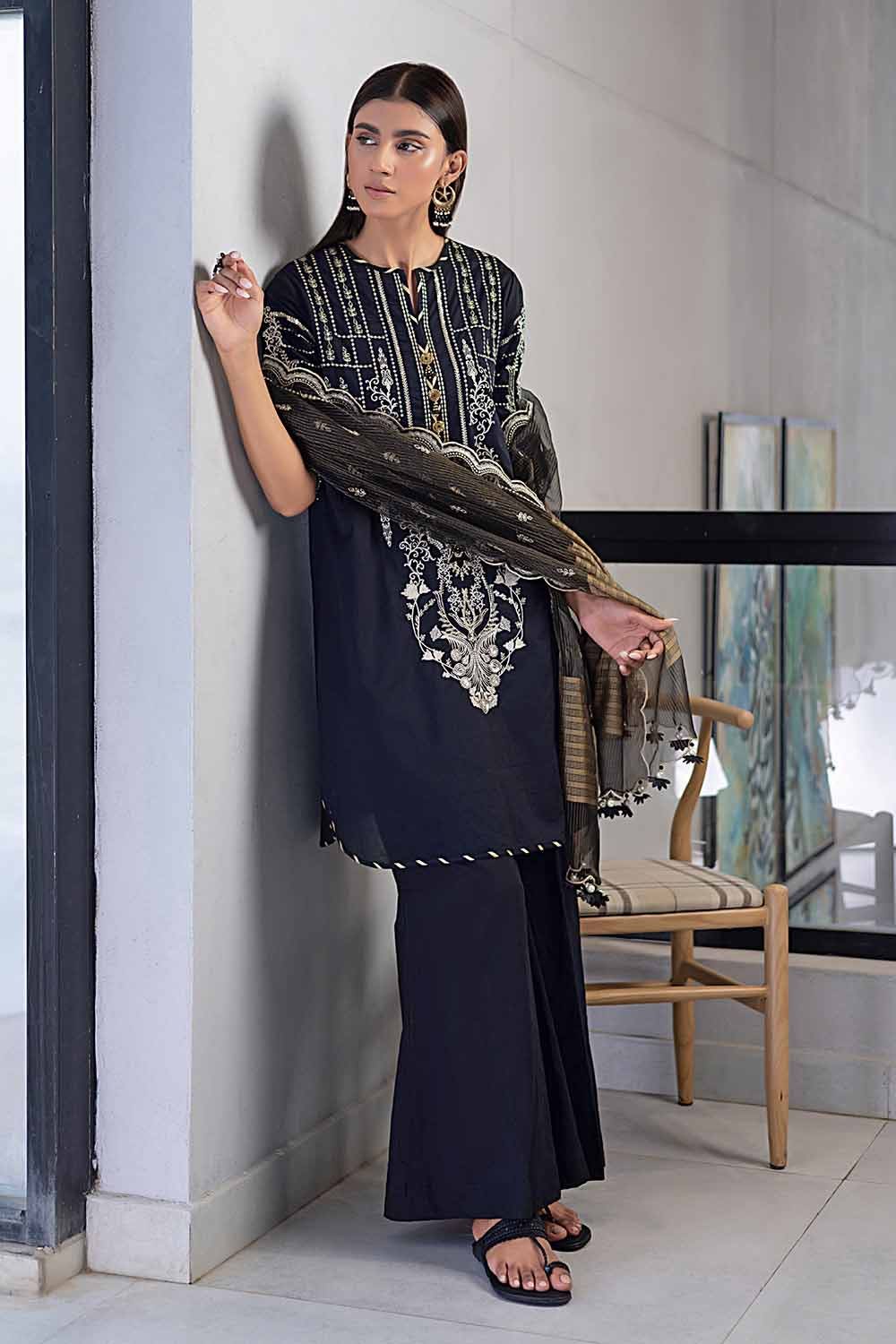 Fabric: Embroidered Organza Zari Stripe Dupatta – 2.5 meters Embroidered Lawn Shirt Front & Sleeves with Dyed Back – 3.10 meters Dyed Trouser – 1.75 meters |