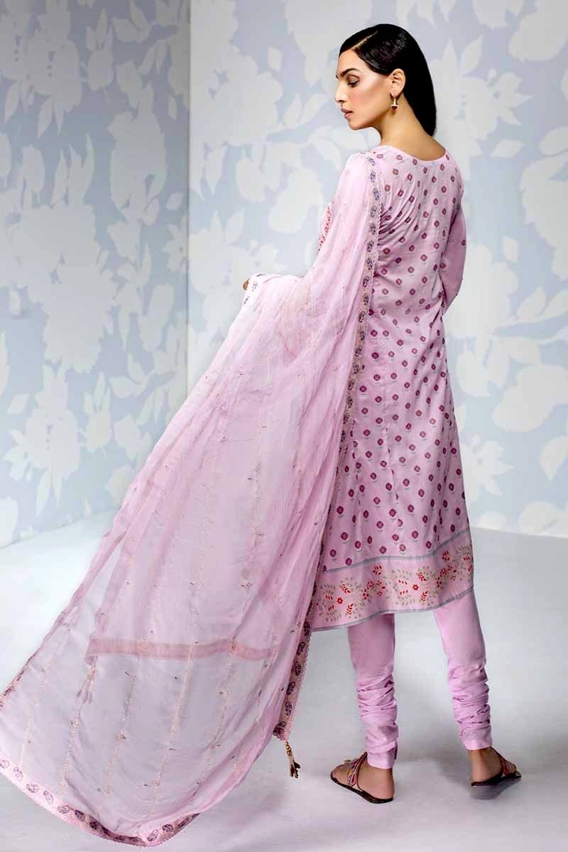 Fabric: Gold & Lacquer Printed Chiffon Dupatta with Croatia Lace Gold & Lacquer Printed Shirt Dyed Bottom |
