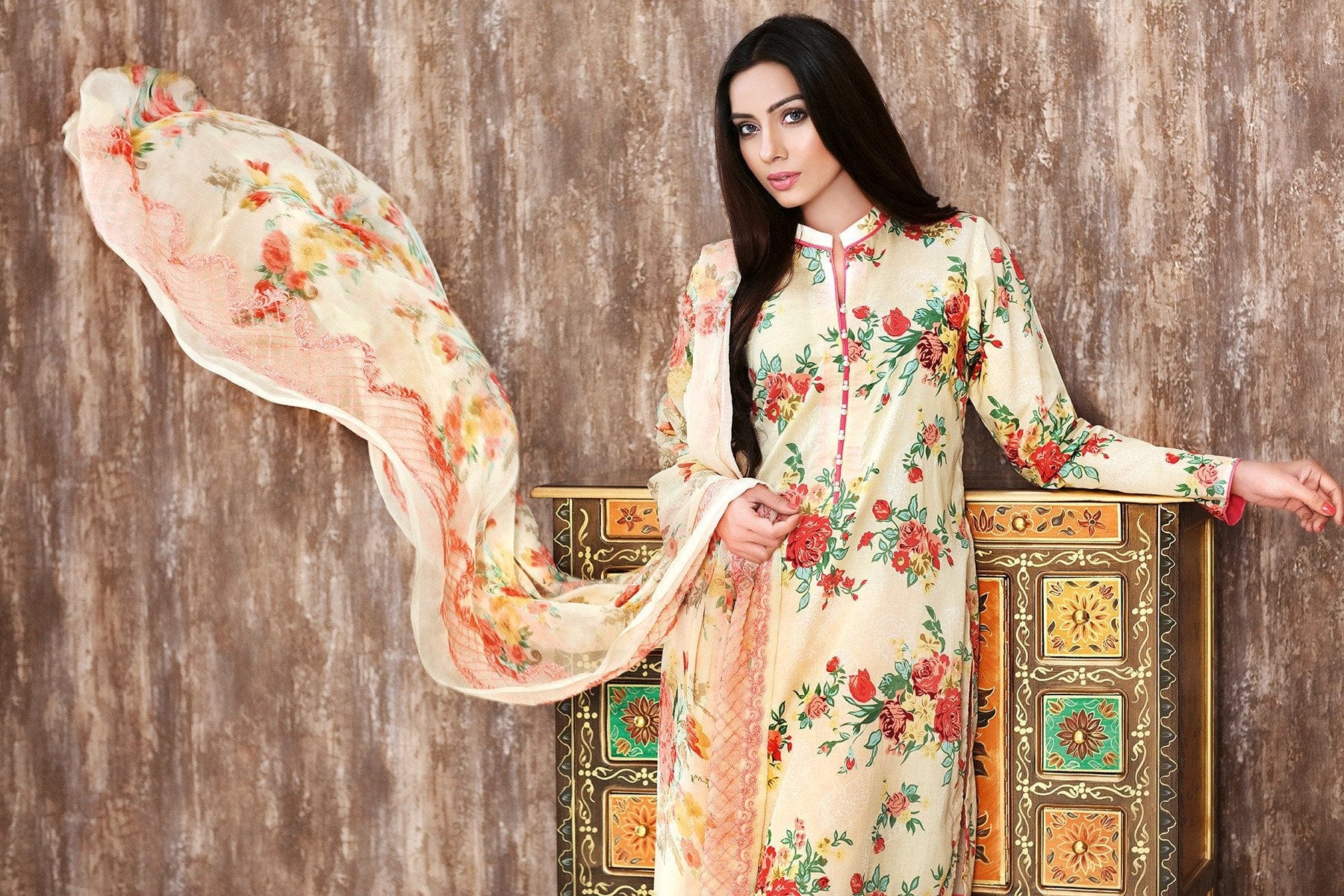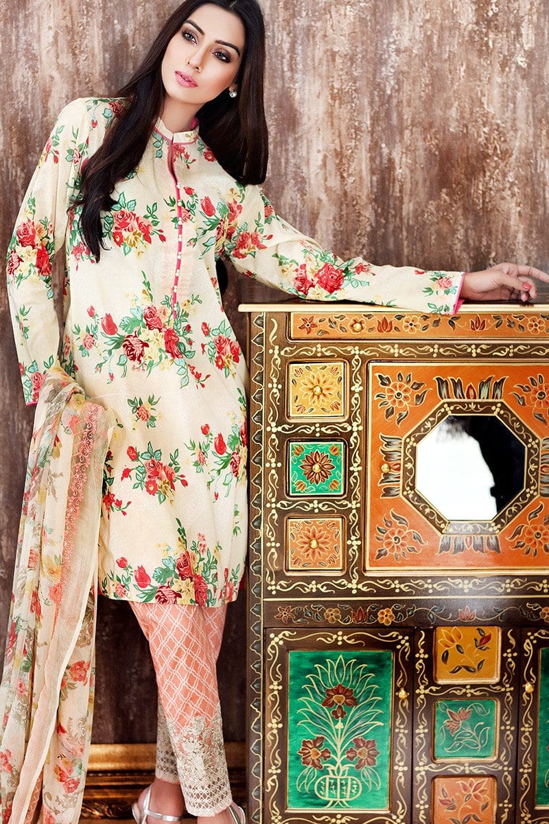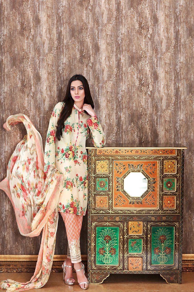 | Fabric | Printed Shirt - 2.5 meters (Premium Lawn) Embroidered Lace - 1 meter Embroidered Chiffon Dupatta - 2.5 meters Printed Shalwar - 2.5 meters |