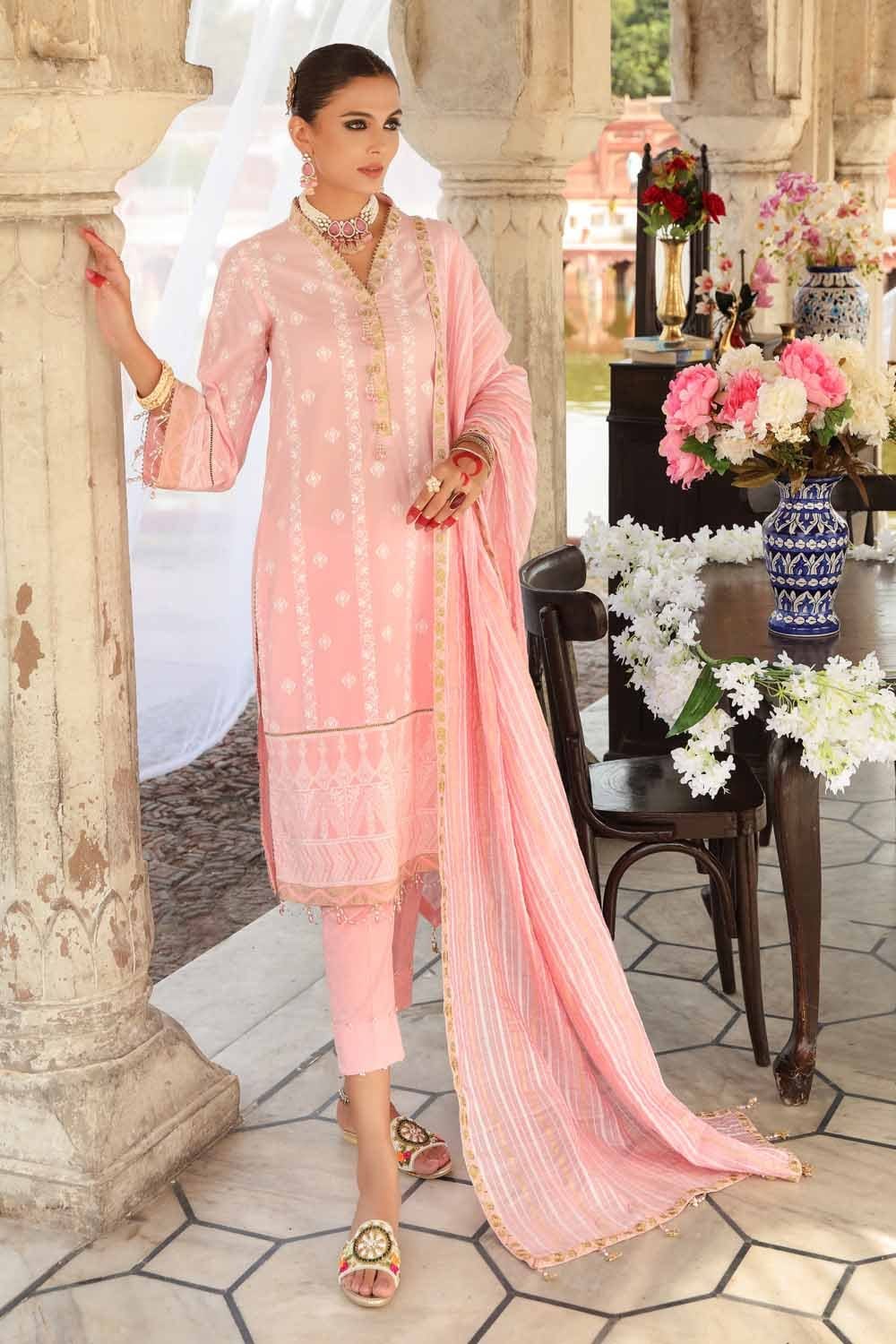 Fabric: Yarn Dyed Dobby Dupatta – 2.5 meters Embroidered Dupatta Lace With Zari, Embroidered Lawn Dupatta With Zari, Embroidered Lace For Neckline, Dyed Lawn Back, Embroidered Lawn Sleeves With Zari –3.4 meters Dyed Lawn Trouser – 1.75 meters |