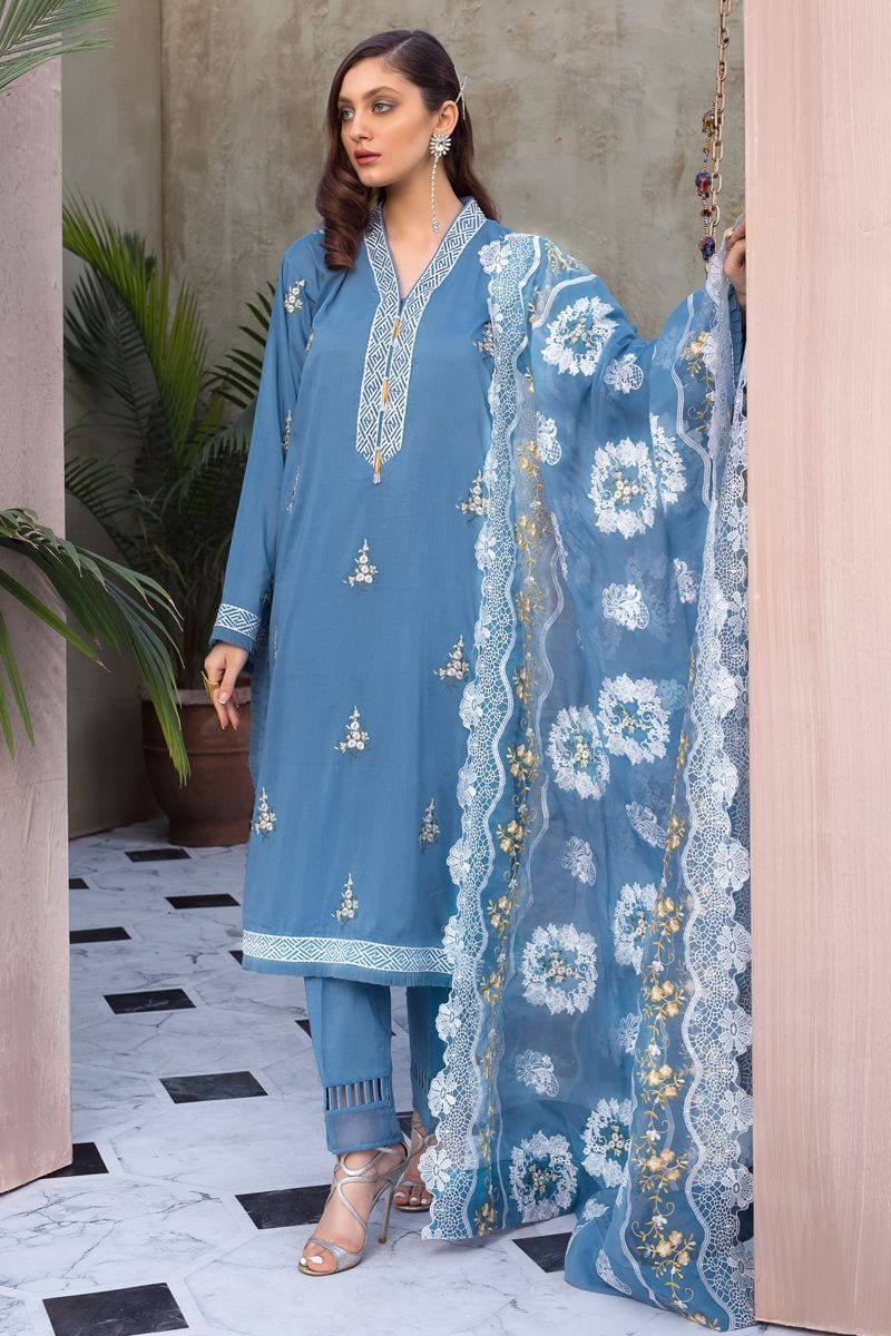 Fabric: 3 PC Embroidered Lawn Suit with Chiffon Dupatta PM-327 |