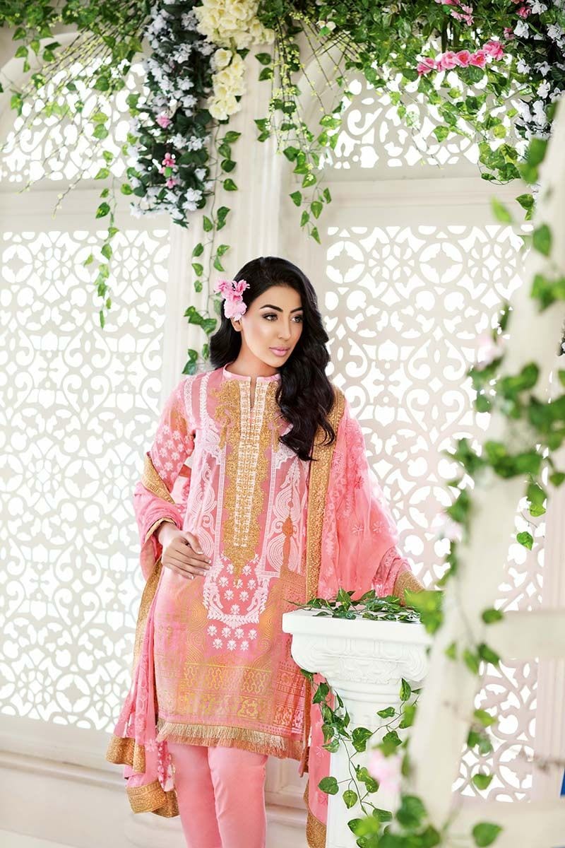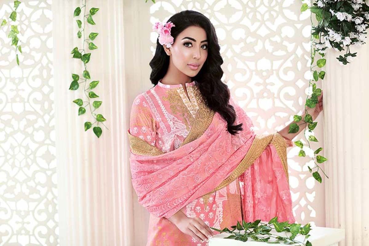 Fabric: Embroidered Chiffon Dupatta with Diamantes - 2.5 meters Embroidered Neckline Printed Shirt - 1.75 meters Dyed Bottom - 1.5 meters |