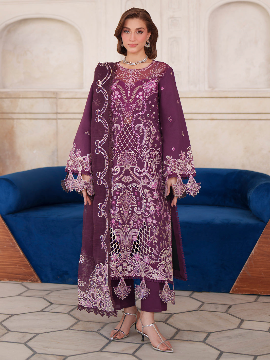 Fabric: Shirt: EMB FRONT LAWN 01 PCS DYED BACK LAWN 0.84 MTR EMB SLEEVE LAWN 0.55 MTR EMB NECKLINE 01 PCS EMB MOTIF SET 01 SET EMB DAMAN PATCH 01 PCS EMB SLEEVE MOTIF 02 PCS Duppatta: EMB NET DUPATTA 2.50 MTR Trouser: DYED CAMBRIC TROUSER 2.50 MTR |