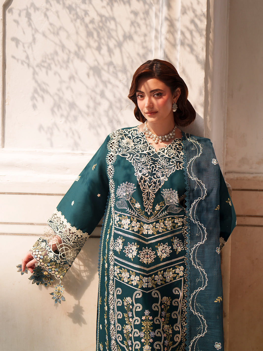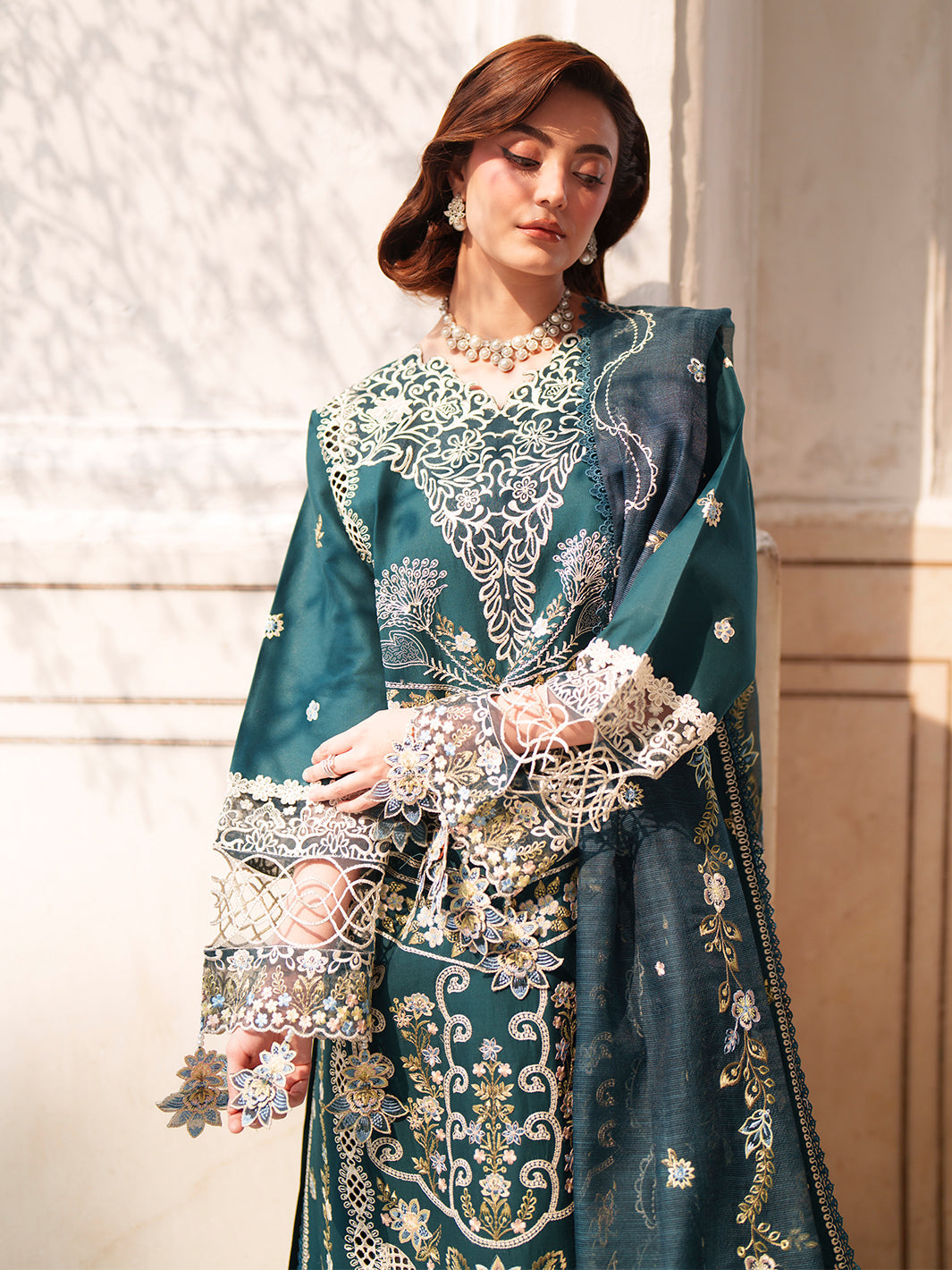 Fabric: Shirt: EMB FRONT LAWN 01 PCS DYED BACK LAWN 0.84 MTR EMB SLEEVE LAWN 0.55 MTR EMB NECKLINE 01 PCS EMB FRONT & SLEEVE LACE 1.75 MTR Duppatta: EMB NET DUPATTA 2.50 MTR Trouser: DYED CAMBRIC TROUSER 2.50 MTR |