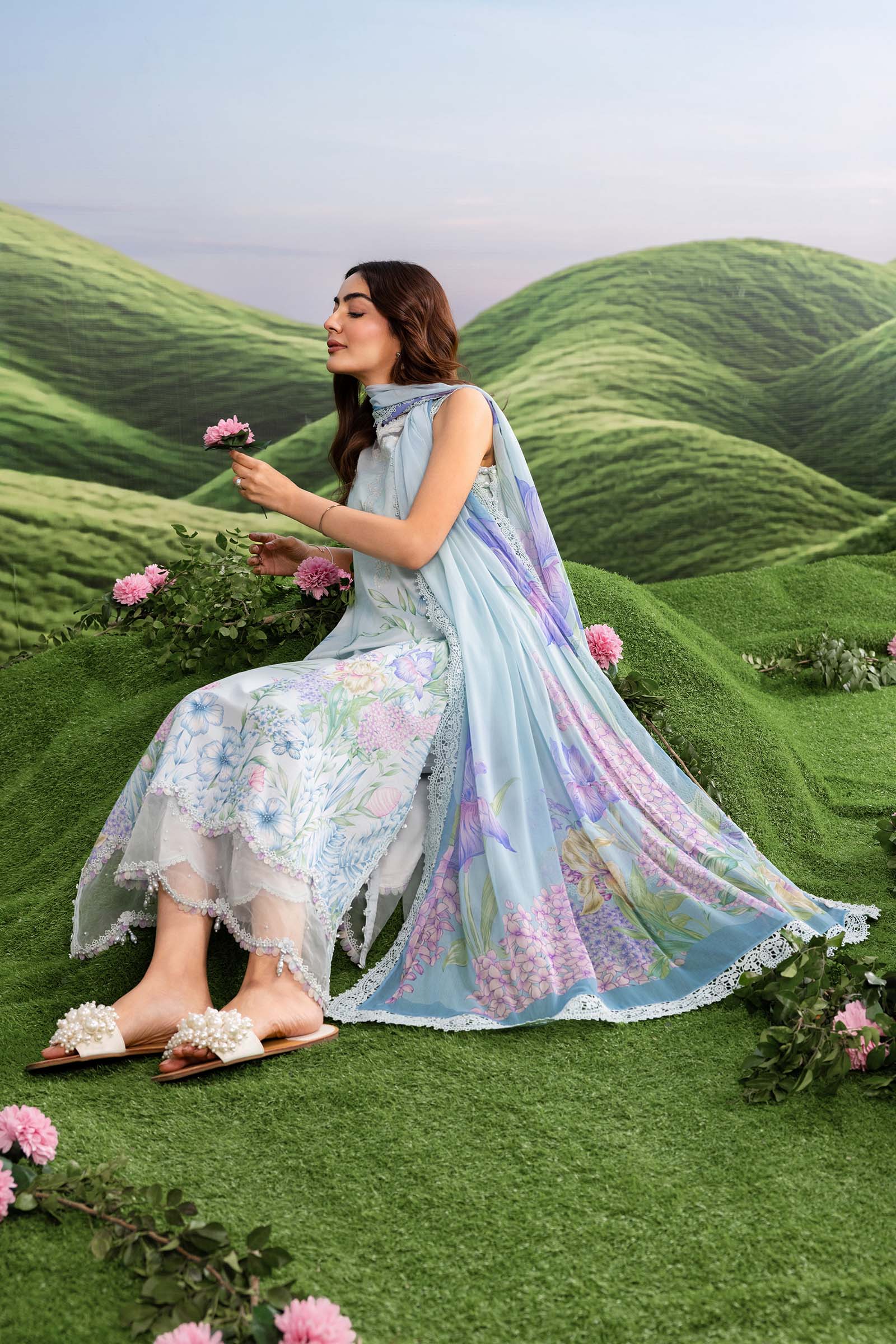 Fabric: Color: Sky Blue Printed Lawn Shirt 1.8m Dyed Cambric Trouser 1.5m Printed Chiffon Dupatta 2.5m Embroidered Neck Patch |