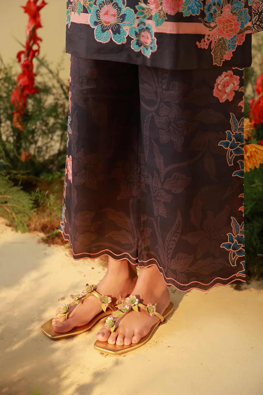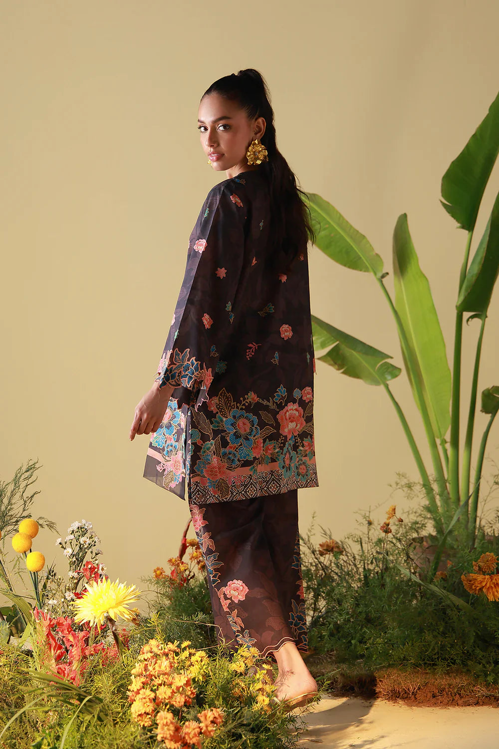 Summary: Experience the serene elegance of the Sahar Mirha 2PC Twilight Botanica, a stunning Pakistani suit designed for the modern woman. This unstitched ensemble features a digital printed shirt and matching trousers crafted from premium Cambric fabric, ensuring comfort and style for the transitional Fall/Winter season. The design showcases a deep teal canvas brought to life with intricate floral vines in soft pastels and ivory, evoking the charm of a twilight garden. Perfect for daily wear or casual outings, this outfit offers effortless sophistication. As an authentic Pakistani dress, it embodies the richness of ethnic fashion with a contemporary touch. Shop this teal floral suit online for a refined addition to your wardrobe.