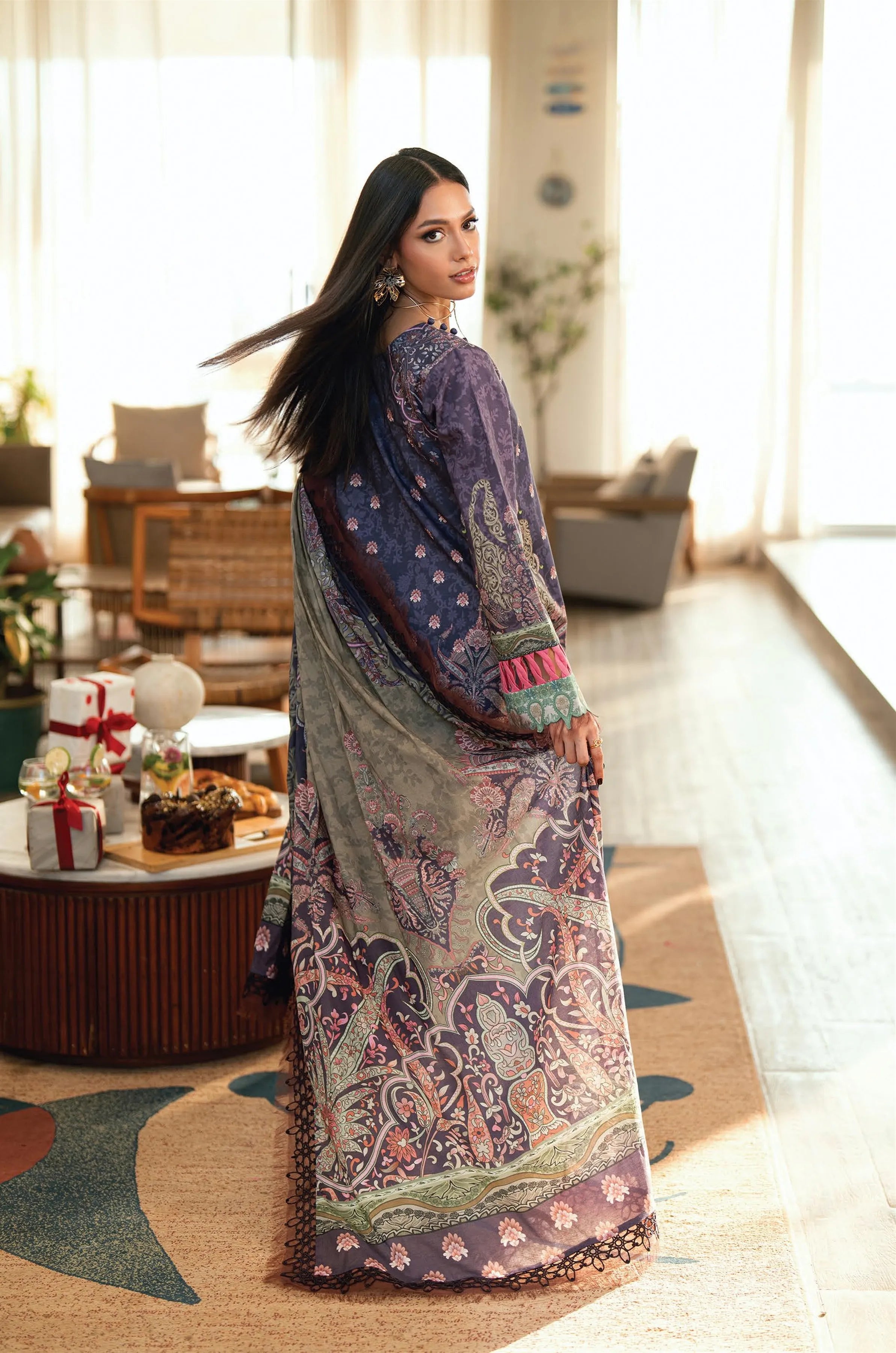 Summary: Embrace sophisticated summer style with this unstitched Pakistani suit from Jade's Urbane collection. The ensemble features a stunning kameez in a deep purple hue, crafted from premium, breathable lawn fabric, perfect for the warmer Spring/Summer season. This elegant Pakistani lawn dress is adorned with intricate prints, blending traditional aesthetics with a modern feel. Ideal for refined daily wear or casual festive gatherings, this ethnic outfit offers both comfort and grace. A perfect choice for those looking to add a touch of class to their everyday wardrobe or for a chic Eid look.