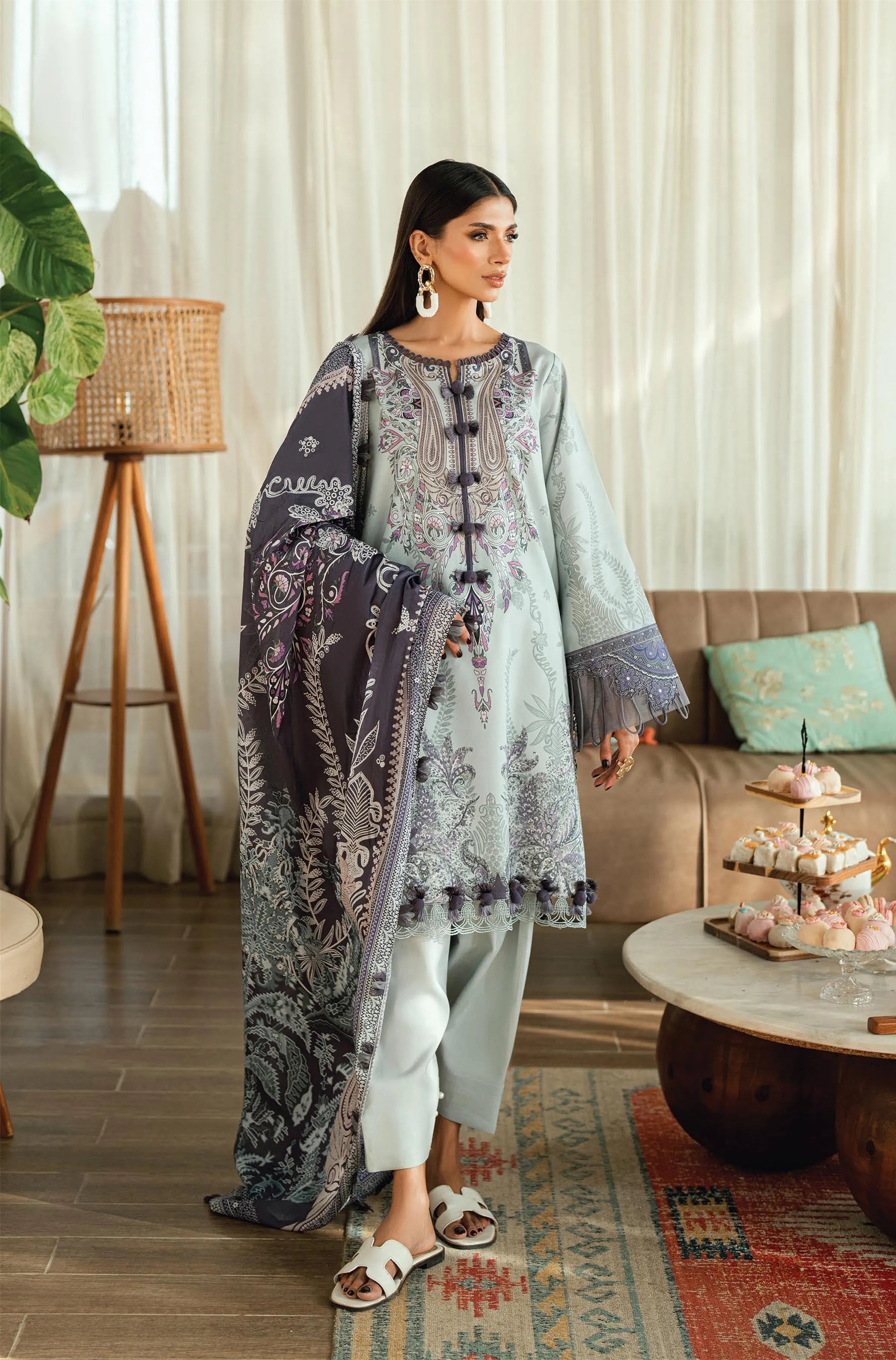 Summary: Embrace sophisticated summer style with this Jade Urbane Pakistani Suit, presented in a calming blue palette. The unstitched kameez is crafted from premium lawn, a lightweight and breathable fabric that ensures comfort throughout the warm Spring/Summer months. This Pakistani Lawn Dress features intricate prints, offering a modern take on traditional ethnic wear. Its versatile design makes it an excellent choice for daily wear, casual outings, or daytime gatherings. This elegant summer outfit provides a perfect canvas to create a personalized look, making it a must-have piece for your wardrobe.