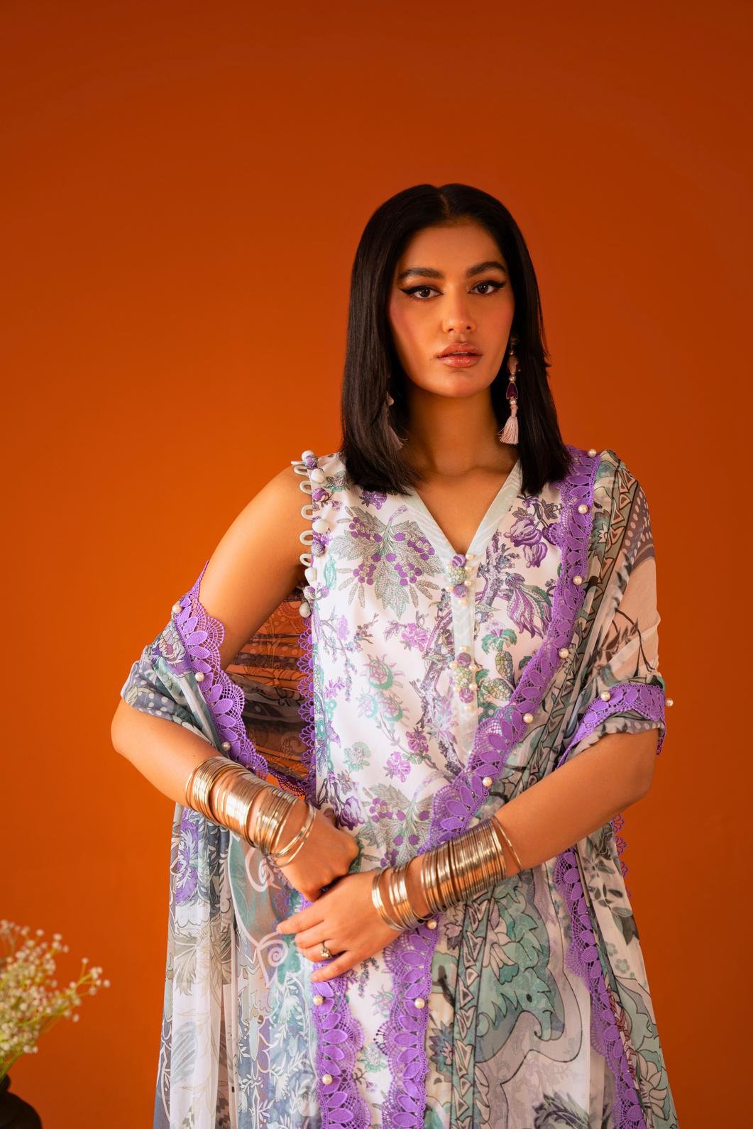 Fabric: 3 Meter Digital Printed Lawn Shirt 2.5 Meter Digital Printed Bamber Chiffon Dupatta 2.5 Meter Digital Printed Cotton Trouser |