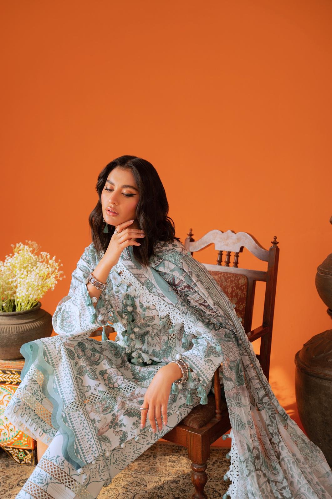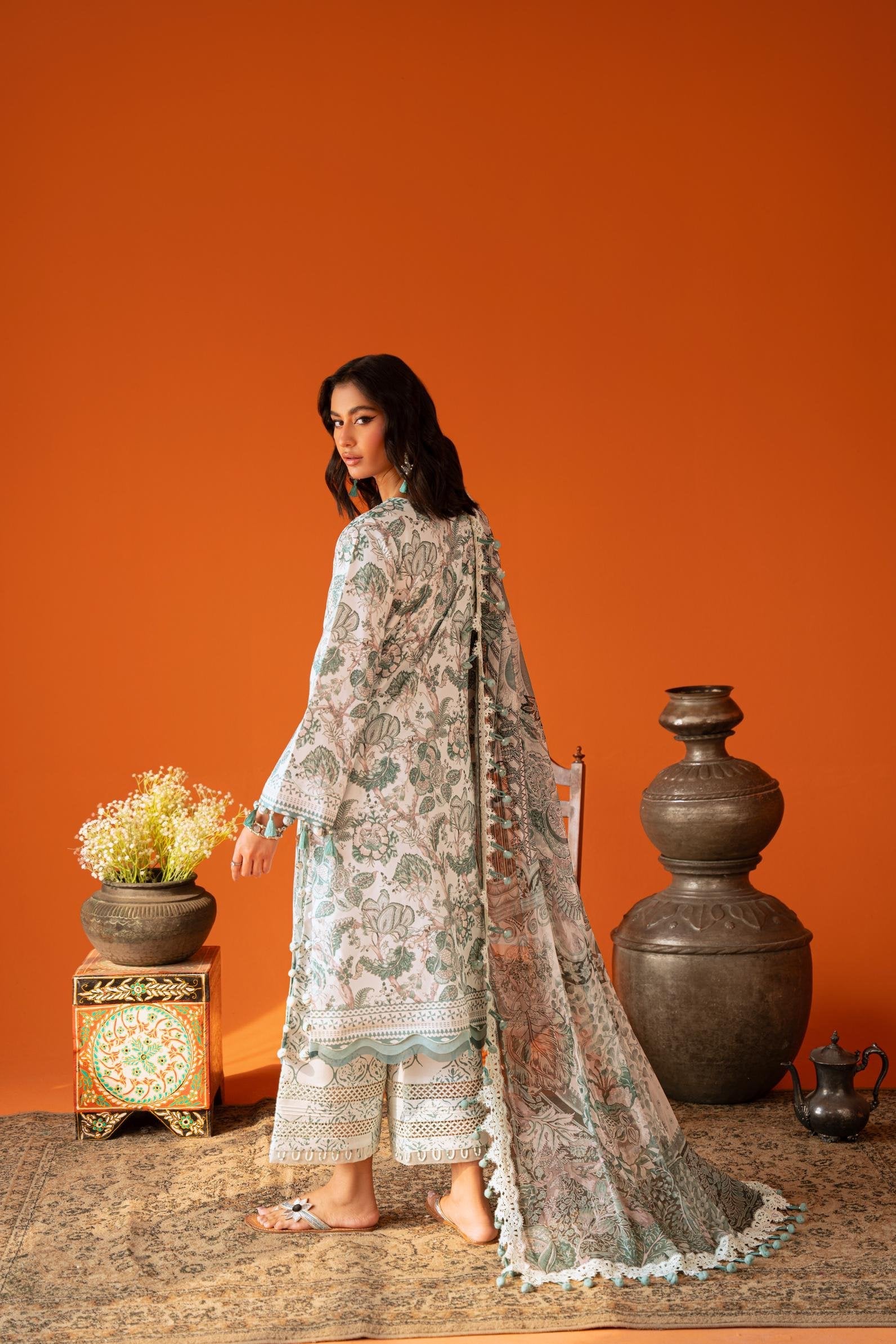 Summary: Embrace summer elegance with the Jade Lumea D-108, an unstitched Pakistani suit. The ensemble features a crisp white kameez crafted from breathable lawn fabric, making it an ideal summer outfit. Adorned with a sophisticated digital floral print, this Pakistani lawn dress offers a sublime blend of tradition and modernity. The lightweight lawn is perfect for the Spring/Summer heat, ensuring you stay comfortable yet stylish. This versatile ethnic wear is excellent for daily wear or casual get-togethers, offering a look of effortless grace. A beautiful choice for your festive clothing collection.