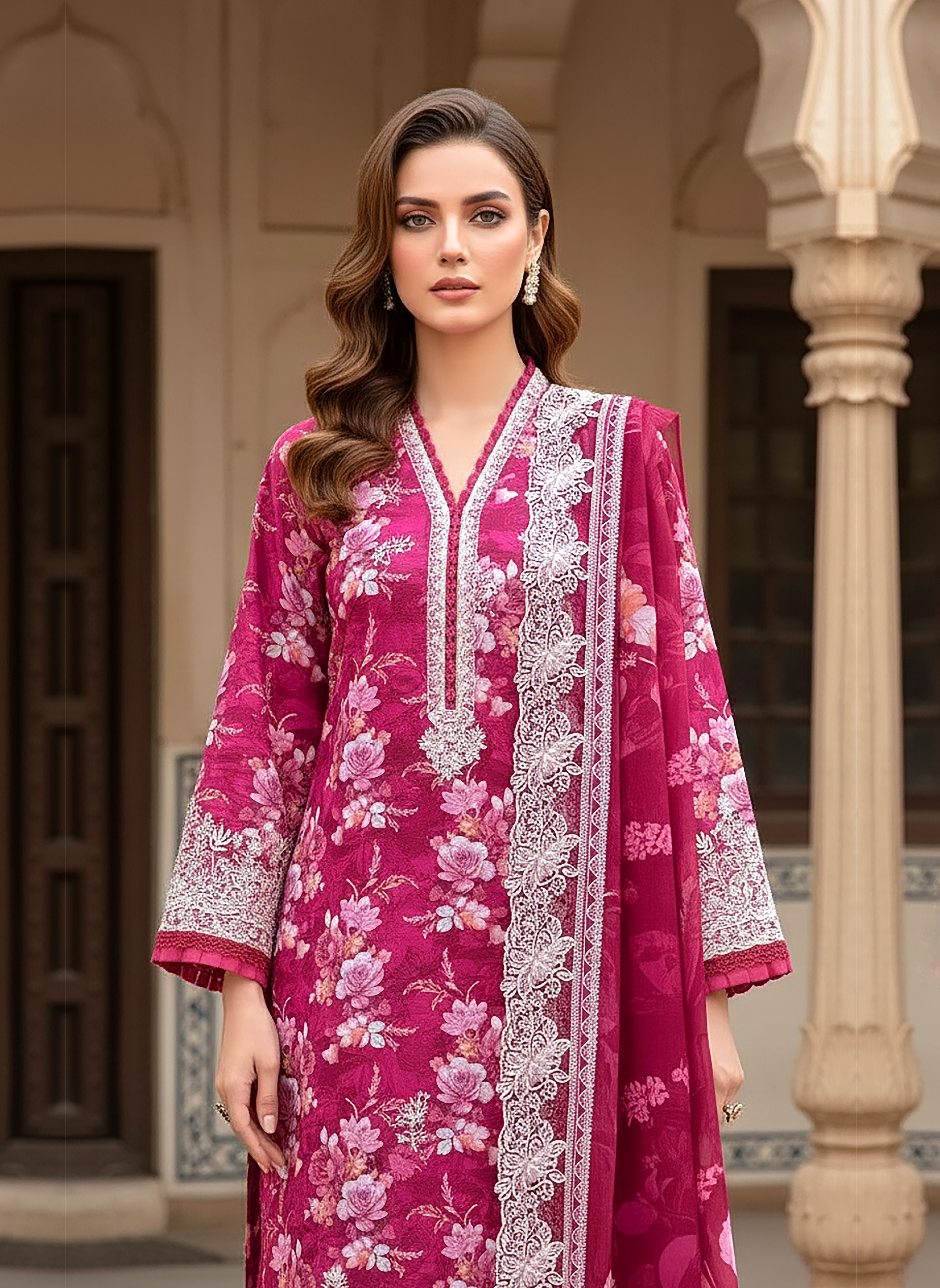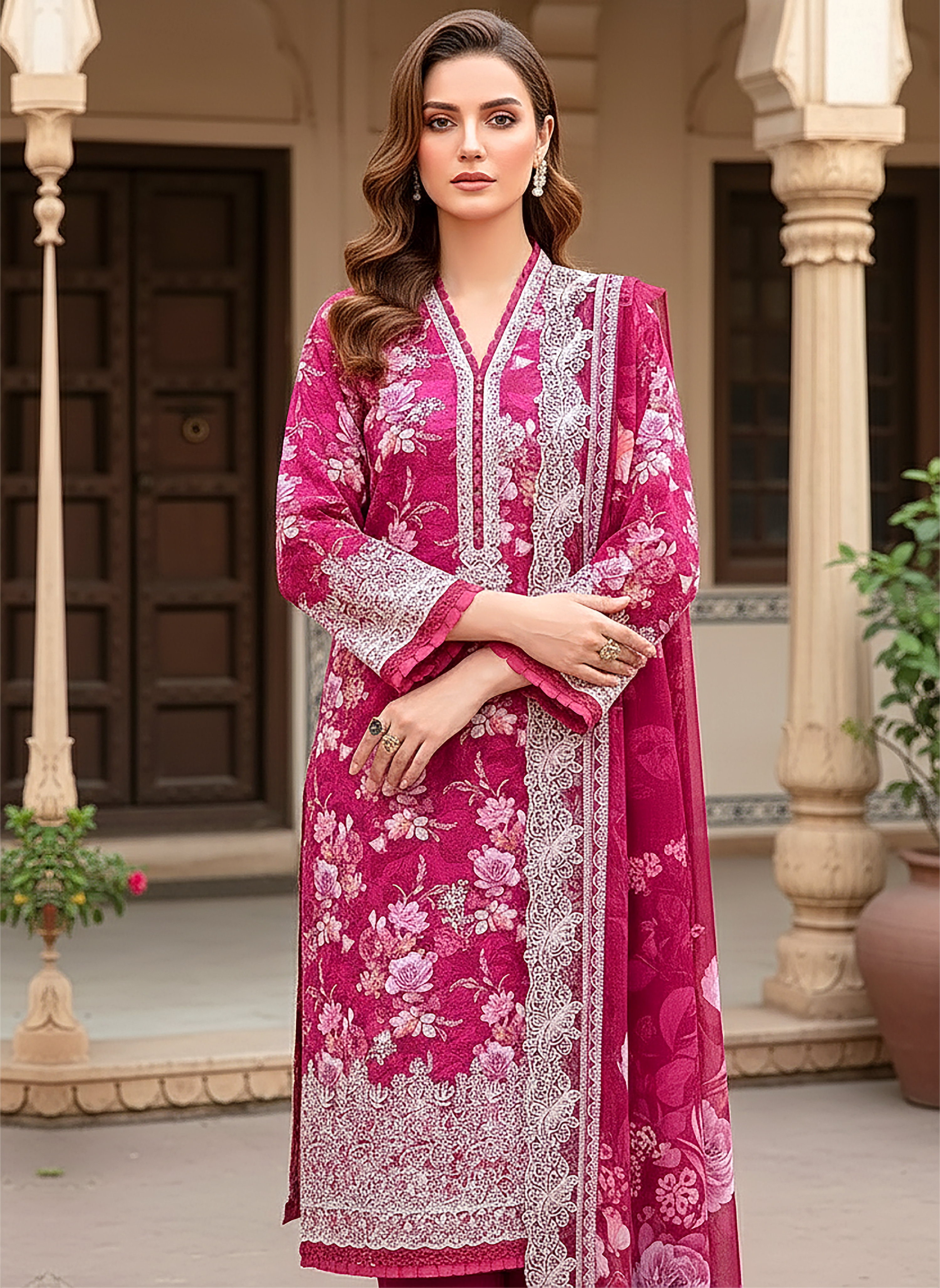 Summary: Embrace the vibrancy of the season with this stunning Burnt Pink Pakistani Lawn Suit by Lakhany. Designed for the modern woman, this unstitched ensemble features a premium Lawn kameez adorned with delicate floral prints and sophisticated embroidery, offering breathable comfort for Spring/Summer. The rich pink hue adds a festive touch, making it an ideal choice for Eid gatherings or casual summer parties. Paired with an exquisite embroidered cutwork dupatta, this outfit perfectly balances traditional charm with contemporary elegance. Shop this authentic Pakistani dress online to elevate your ethnic collection with timeless style.