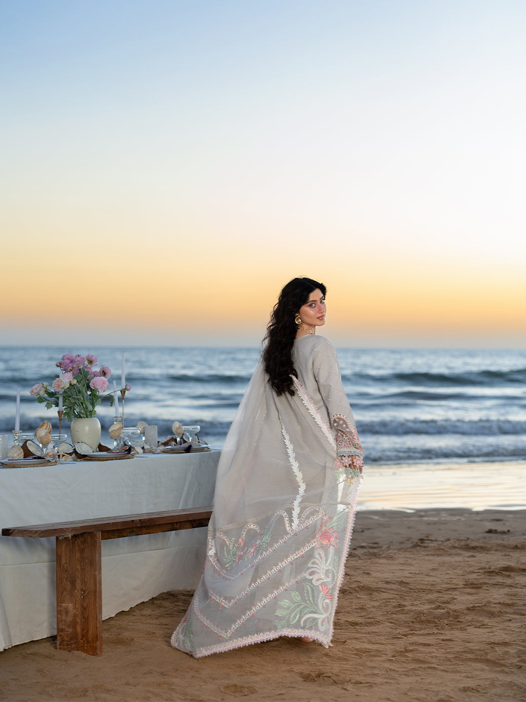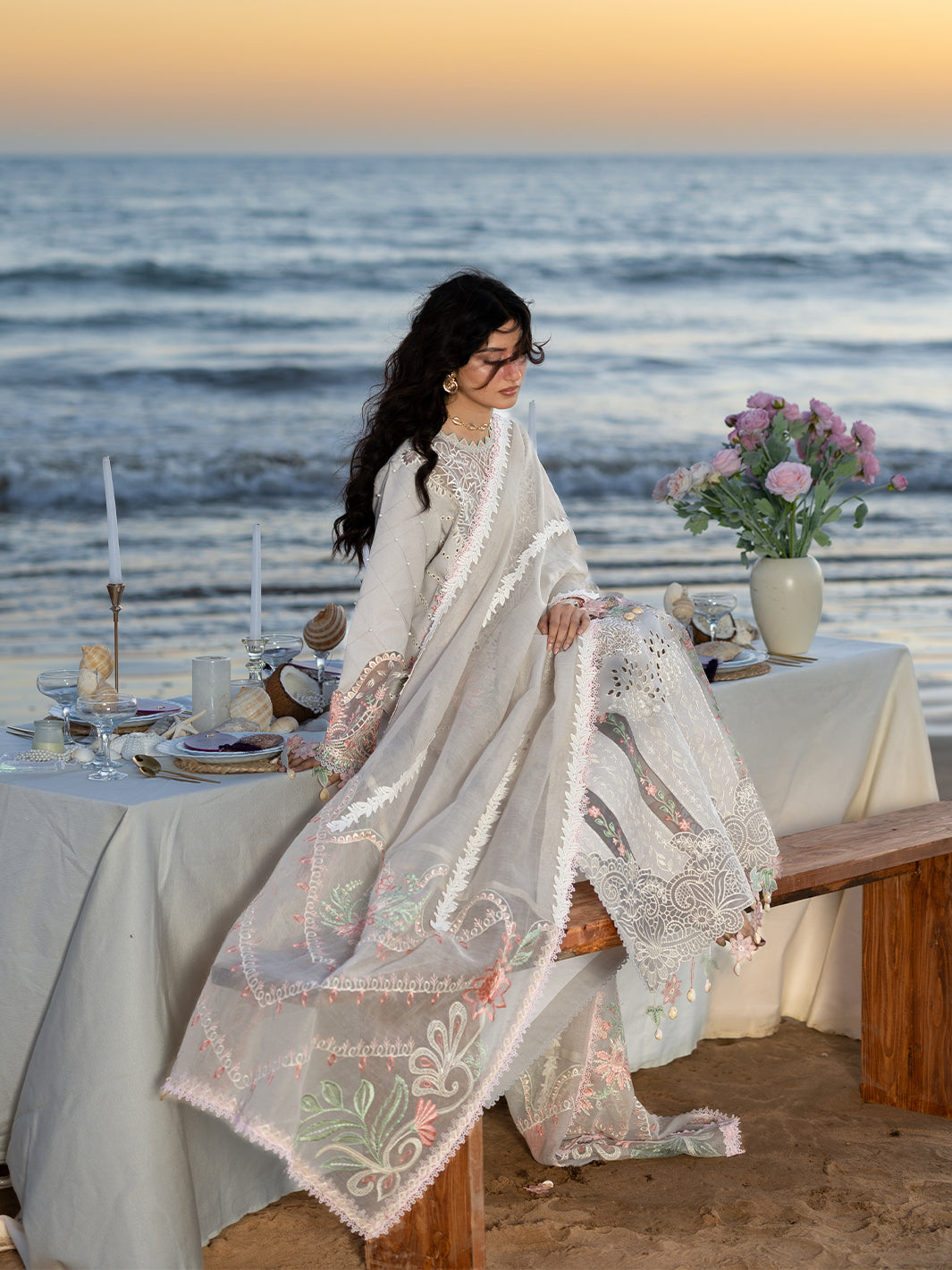 Summary: Radiate sophistication in this Grey Luxury Lawn Pakistani Suit from Mahnur’s Sirene collection, showcasing the graceful Sajal Aly. This unstitched S-06 ensemble features a premium Lawn shirt enriched with intricate white schiffli embroidery and delicate cutwork, offering a breathable and stylish choice for the Spring/Summer season. The design is elevated with soft pastel floral motifs on the borders and sleeves, paired with an embroidered Net dupatta that adds a layer of sheer elegance. Ideal for Eid celebrations, summer soirees, or festive day events, this Pakistani dress embodies tailored perfection. Shop this stunning embroidered lawn outfit online to achieve a chic, celebrity-inspired look.