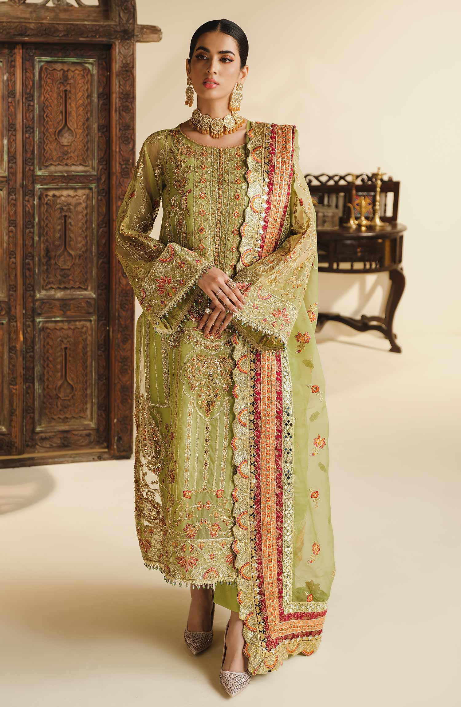 Embroidered handmade organza front Center panel left right panel & sleeves