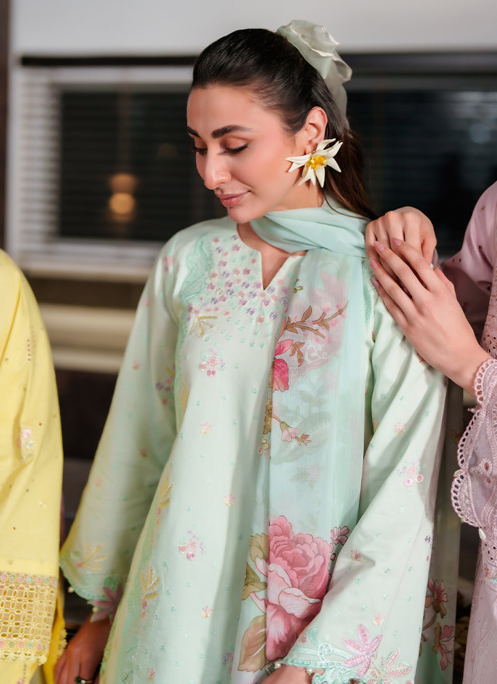 Summary: Embrace the elegance of the Neeshay 'Aizere' suit, a stunning Pakistani dress in a tranquil sea green hue. This outfit is crafted from premium lawn, a lightweight and breathable fabric perfect for Spring/Summer comfort. The kameez is beautifully adorned with intricate embroidery on the front and sleeves, complemented by an embroidered organza daman patch, making it a sophisticated choice for formal gatherings. As part of the 'Symphony Luxury Lawn' collection, this ethnic wear is ideal for creating a graceful statement at Eid celebrations or daytime parties, blending traditional aesthetics with contemporary style.