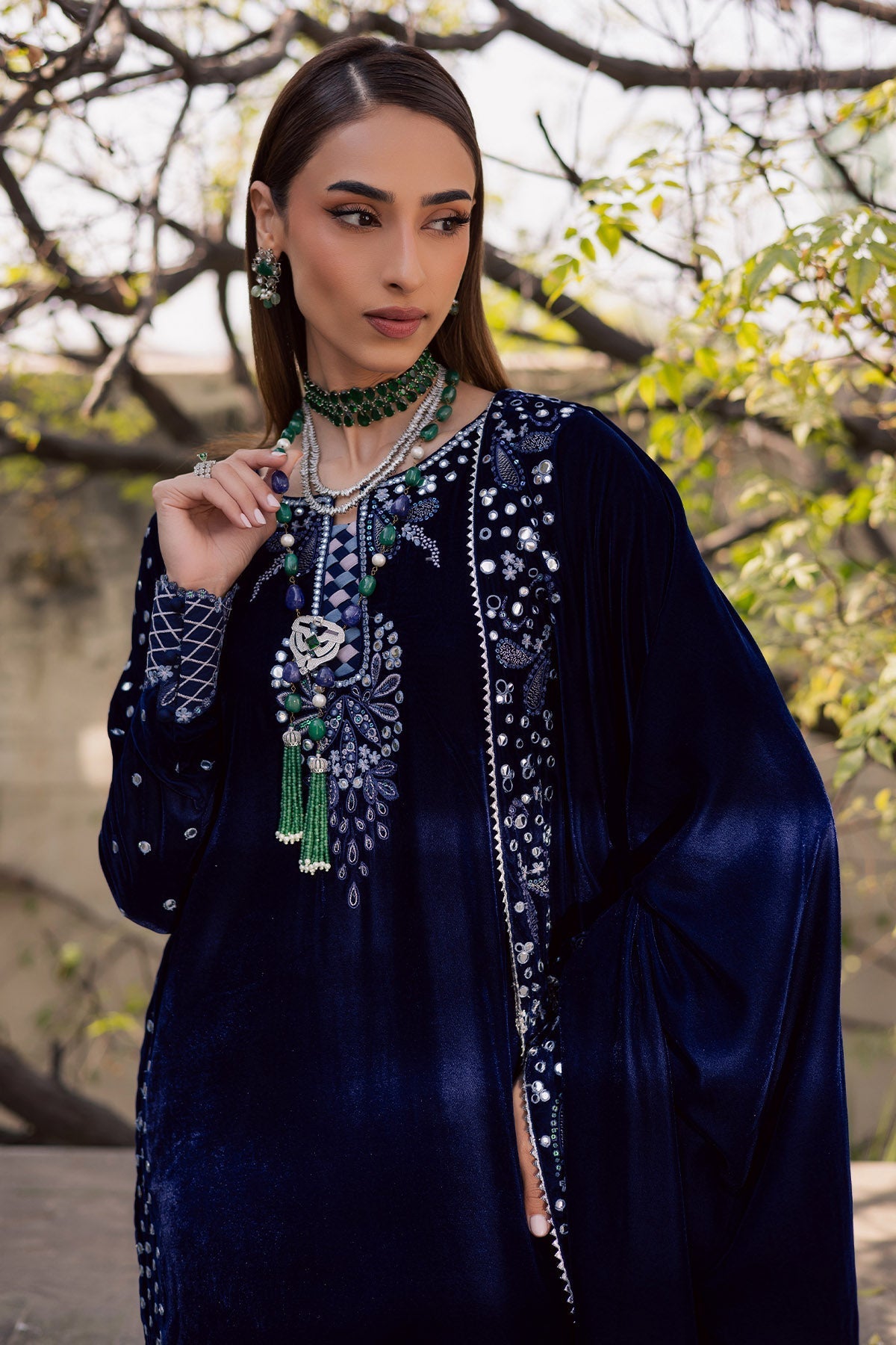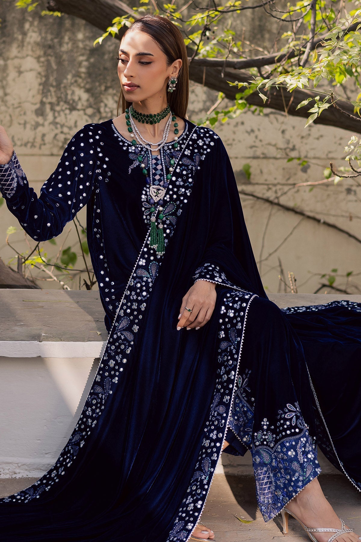 Fabric: Embroidered Velvet Shirt Embroidered Velvet Shawl Dyed Velvet Trouser |