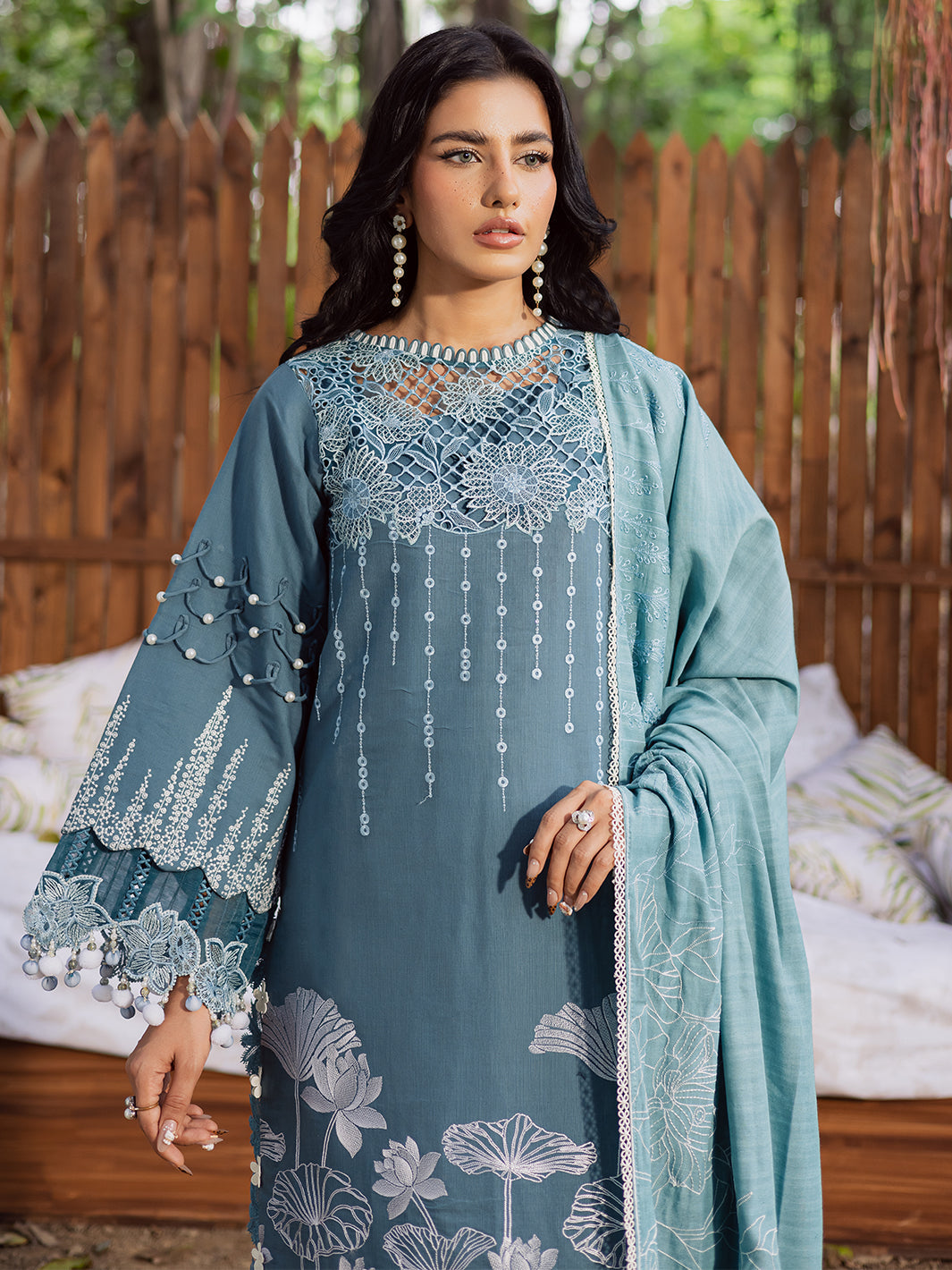 Summary: Embrace the elegance of winter with this stunning Teal Pakistani Suit from Parishay's Winterwood Tales collection. Crafted from premium Khaddar fabric, this unstitched dress is perfect for the Fall/Winter season, offering both warmth and style. The kameez features exquisite white embroidery across the intricate neckline, front daman, and sleeves, creating a beautiful contrast. Paired with a warm, embroidered Wool shawl, this formal wear ensemble is a masterpiece of ethnic design. This Pakistani dress is an ideal choice for winter festivities, formal dinners, or elegant social gatherings.