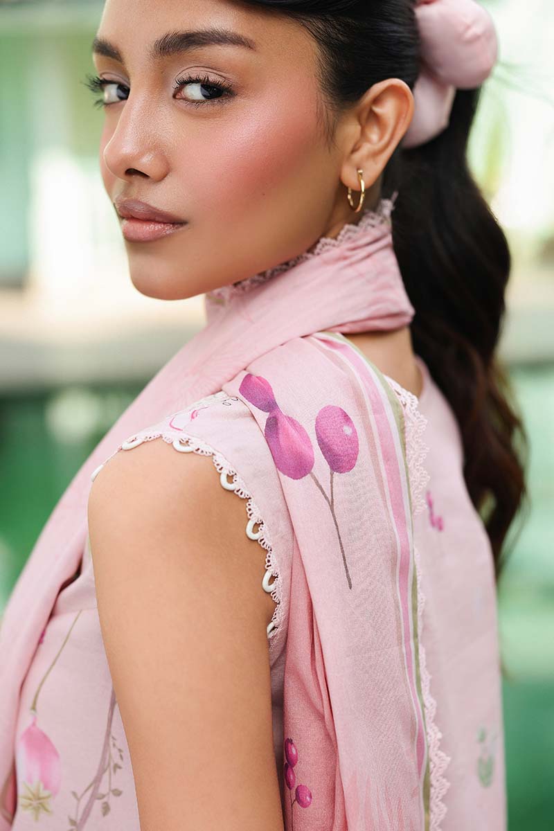Summary: Embrace the elegance of summer with this stunning pink Pakistani suit from Qalamkar's Spring/Summer collection. Crafted from premium lawn, this ethnic wear essential is lightweight and breathable, perfect for warm weather. The kameez showcases a sophisticated digital print, enhanced by an intricately embroidered neckline and a delicate Chikankari border for a touch of classic charm. This Pakistani Lawn Dress blends comfort with formal style, making it a standout summer outfit. The soft pink palette exudes grace, making this festive clothing ideal for Eid celebrations, daytime parties, or formal gatherings. Shop this look for effortless elegance.