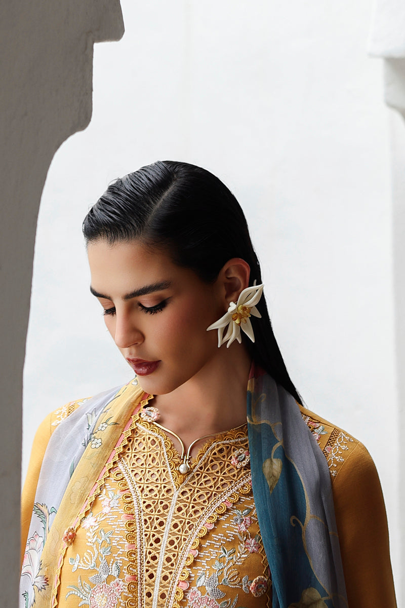 Summary: Embrace autumnal elegance with this stunning mustard Pakistani suit from Qalamkar's fall collection. Crafted from premium linen, this Fall/Winter ensemble is designed for sophistication. The kameez is a masterpiece of craftsmanship, featuring intricate Chikenkari embroidery across the center panel, neckline, and sleeves. The rich mustard color makes this ethnic wear a perfect choice for festive occasions like a Haldi ceremony. As a beautifully detailed formal wear outfit, this Pakistani dress is ideal for making a graceful statement at any wedding or celebratory event this season.
