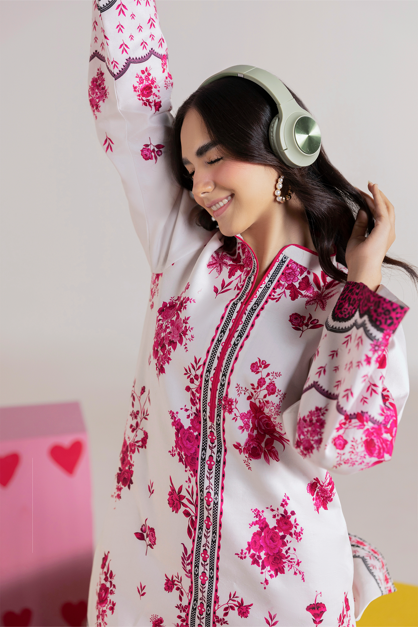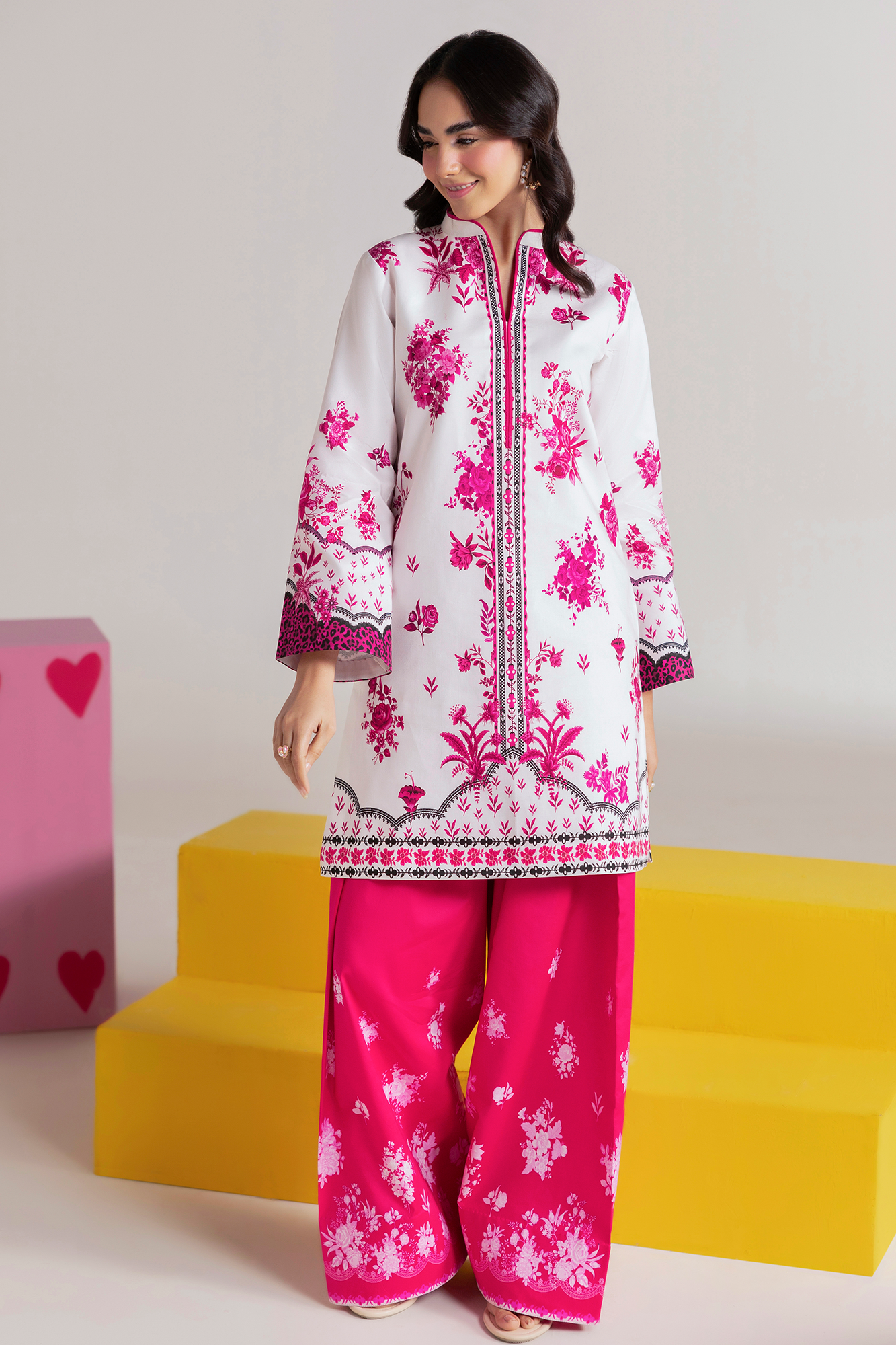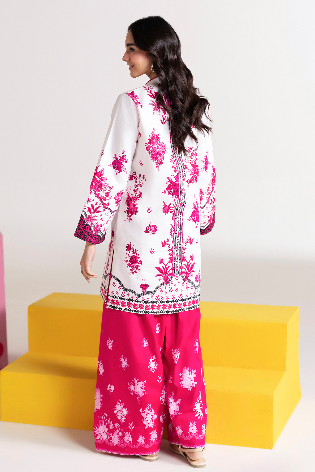 Summary: Embrace the essence of summer with the RajBari Amal Summer Prints co-ord set. This stunning Pakistani suit features a premium lawn shirt on a crisp white base, brought to life with a vibrant digital print of magenta florals. The lightweight and breathable lawn fabric makes this ethnic wear an essential for the Spring/Summer season, promising comfort and style. As a versatile 2-piece summer outfit, this Pakistani lawn dress is perfect for daily wear, casual get-togethers, or daytime festive events. Its elegant design makes it an ideal choice for creating a fresh and sophisticated look.