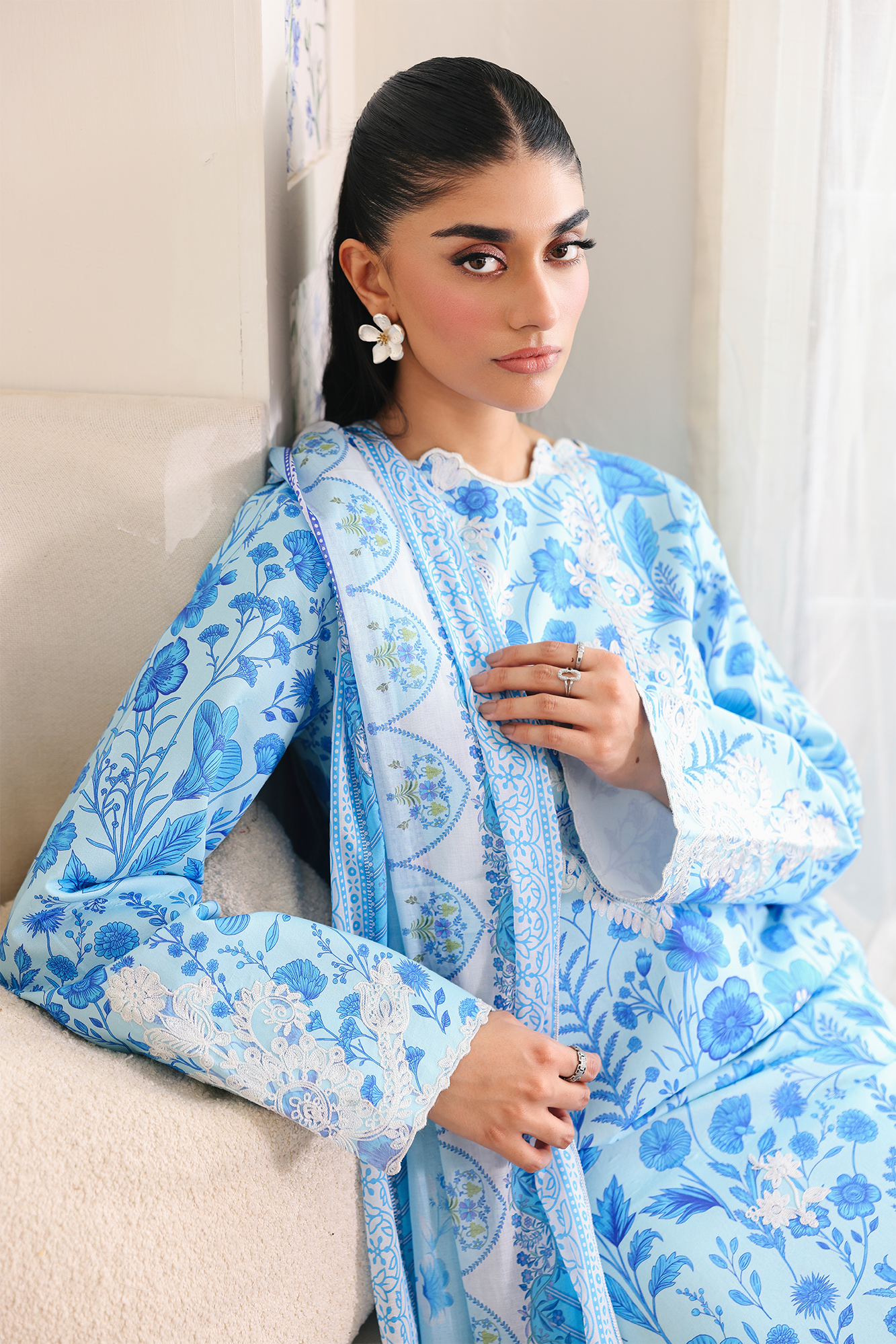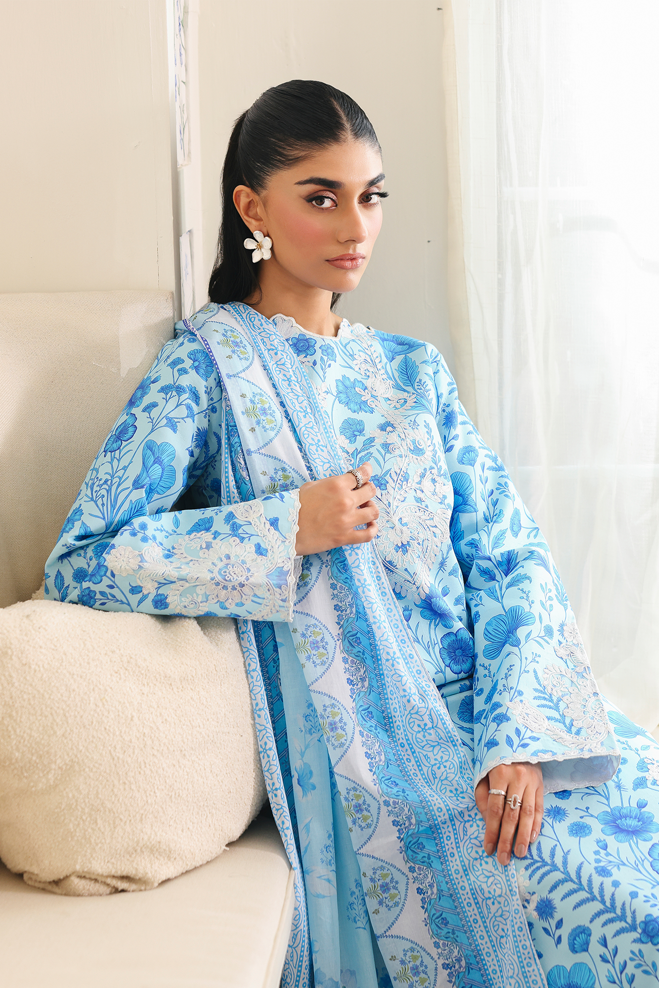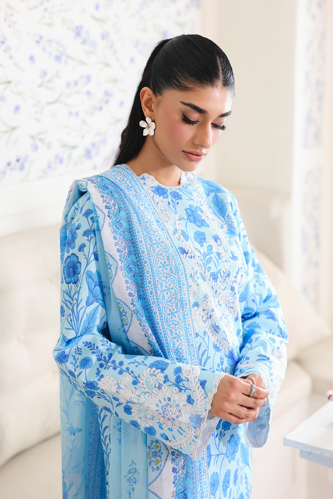 Fabric: Embroidered & Printed Lawn Front Digital Printed Lawn Sleeves & Back Embroidered Motifs x2 for Sleeves Embroidered Hem Border Dyed Cotton Trouser Digital Printed Primium Voil Dupatta |