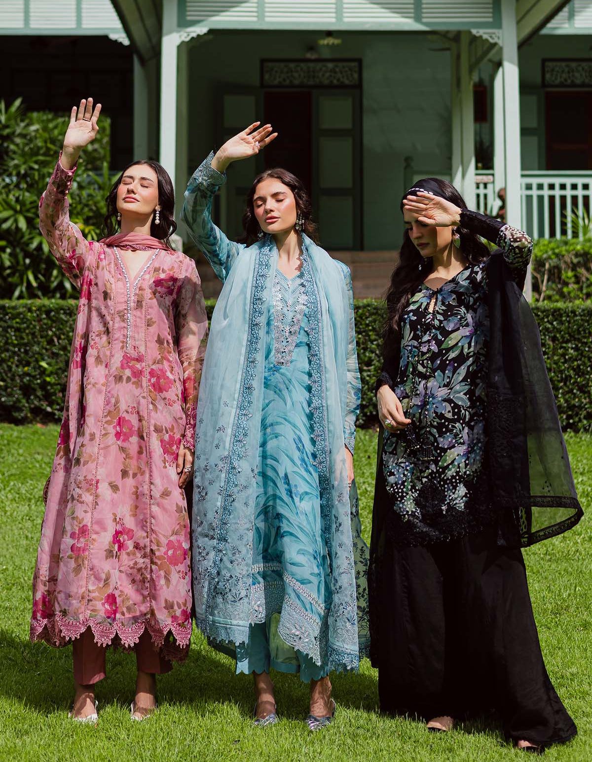 Fabric: Printed And Embroidered Organza Frock With Hand Embellished Neckline Embroidered Stitched Chiffon Dupatta Dyed Rawsilk Trouser And Inner |
