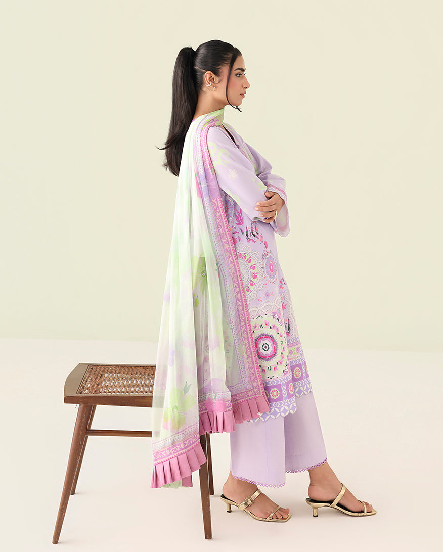 Summary: Embrace summer elegance with the 'Azure days' Pakistani suit by Roheenaz. This stunning unstitched dress features a beautiful lavender lawn kameez, adorned with an intricate print and a delicate embroidered organza neckline. As a quintessential Pakistani Lawn Dress, its lightweight and breathable fabric is perfect for the Spring/Summer season, ensuring both comfort and style. The serene lavender hue lends a sophisticated charm, making this ethnic wear perfect for daily wear, daytime gatherings, or festive Eid celebrations. This summer outfit is an ideal choice for a graceful and contemporary look.