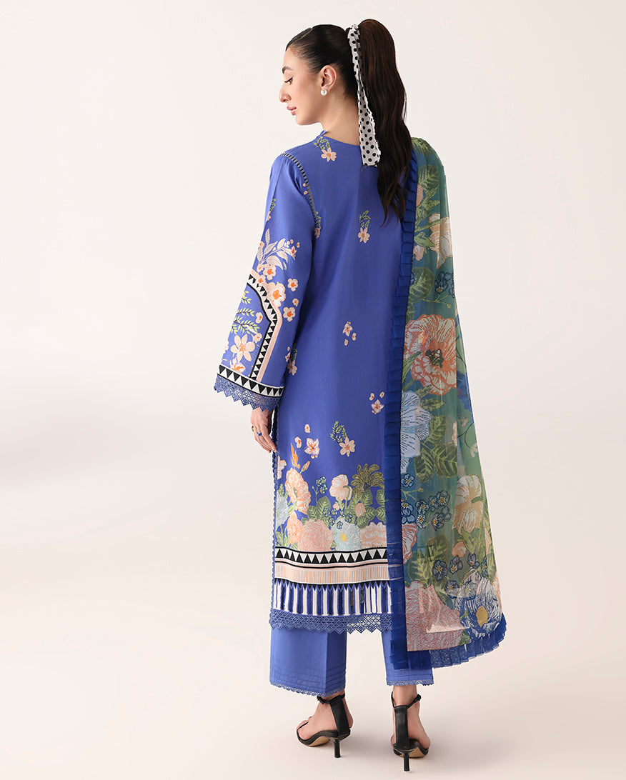 Summary: Embrace the essence of summer with the 'Breeze of Dawn' Pakistani Suit by Roheenaz. This stunning ethnic wear features a beautifully printed lawn kameez in a vibrant shade of blue, adorned with delicate floral motifs. The breathable lawn fabric makes this Pakistani dress a perfect choice for warm weather, ensuring comfort and style. An exquisite embroidered organza neckline adds a touch of formal elegance, while the luxurious printed silk dupatta completes the ensemble. This unstitched summer outfit offers versatility for casual day events, festive gatherings, or as a chic Eid outfit. It's an ideal choice for effortless daily elegance.