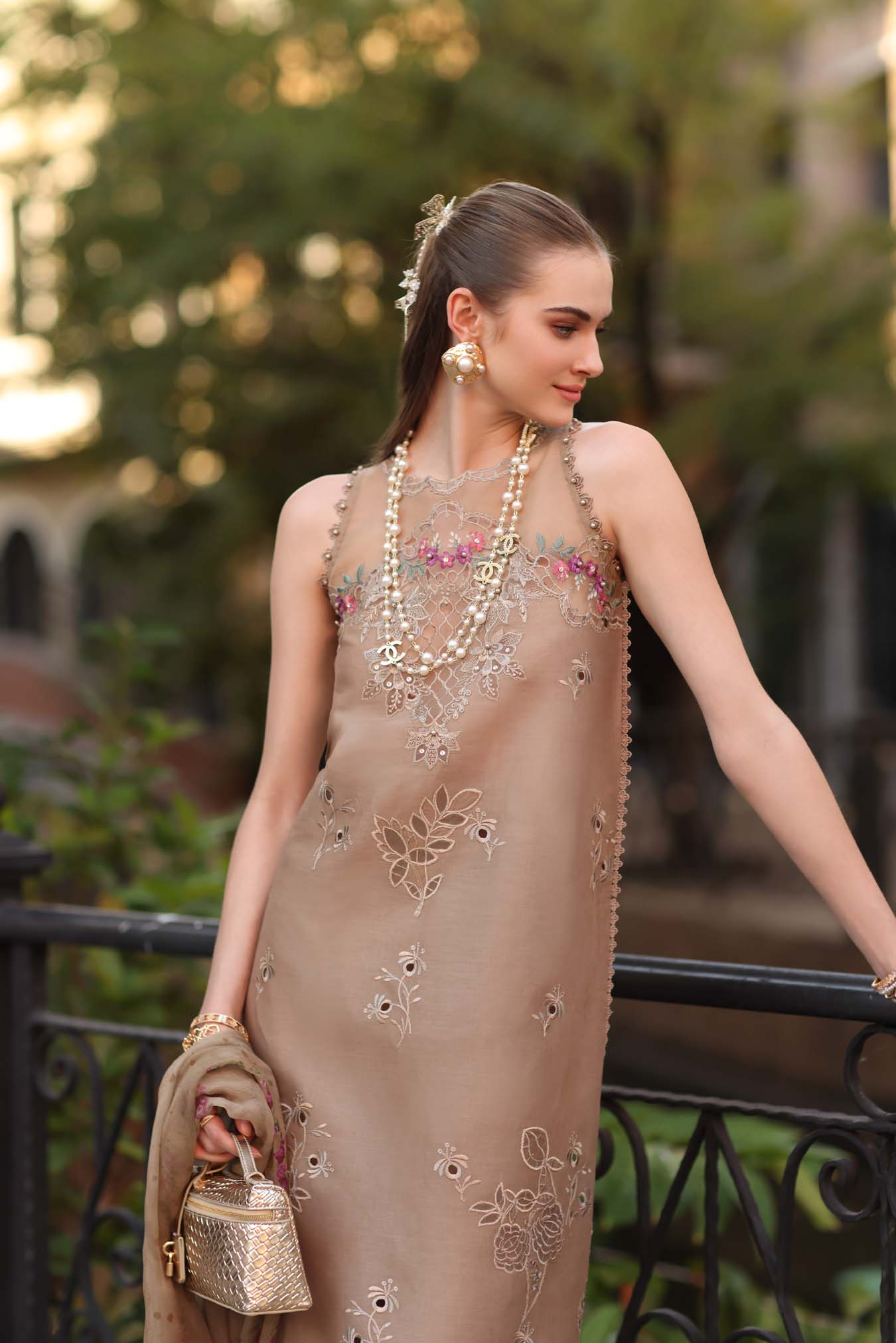 Fabric: 3 piece unstitched lawn embroidered suit Shirt Fabric: Lawn - A lightweight, breathable fabric with a soft, lustrous finish. Trouser Fabric: Cambric - A fine, tightly-woven cotton fabric that’s soft, smooth, and lightweight Dupatta Fabric: Chiffon-Lightweight, sheer and ideal for summer season Details: Schiffli embroidered lawn front Dyed lawn back Dyed lawn sleeves Dyed cambric trousers Digital printed chiffon dupatta Embroidered neckline Embroidered hem border Embroidered scalloped hem border Embroidered front Patches(2) Embroidered sleeves Border Description: An ode to understated grandeur, this ensemble is crafted in a beige hue that radiates sophistication. The shirt features intricate schiffli detailing on the front, delicately scattered to create texture while maintaining elegance. The highlight of the design is the heavily embroidered border, beautifully crafted to give a refined cutwork effect along the hemline. The monotonal neckline embroidery enhances the richness of the base color, creating a seamless and polished look without overpowering the design. Paired with a monotonal dupatta, the ensemble remains cohesive and balanced, allowing the craftsmanship of the schiffli and border to truly stand out. |