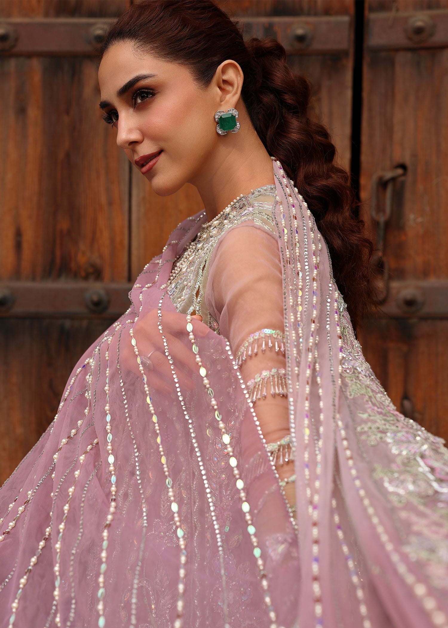 Summary: Embrace regal elegance with the Crimson Jhilmil Luxury Wedding Formals collection, featuring this stunning Lavender Organza Pakistani suit modeled by Maya Ali. The unstitched shirt is a work of art, boasting hand-appliqued panels, intricate adda work, and two-tone sequin embellishments on premium organza fabric. Designed for the modern woman, this festive outfit includes a crystal-encrusted dupatta with net pallu details, perfect for making a statement. Ideal for wedding wear and formal gatherings, this ethnic ensemble blends traditional craftsmanship with contemporary style. Elevate your wardrobe with this exquisite Spring/Summer masterpiece. Shop this authentic designer look online.