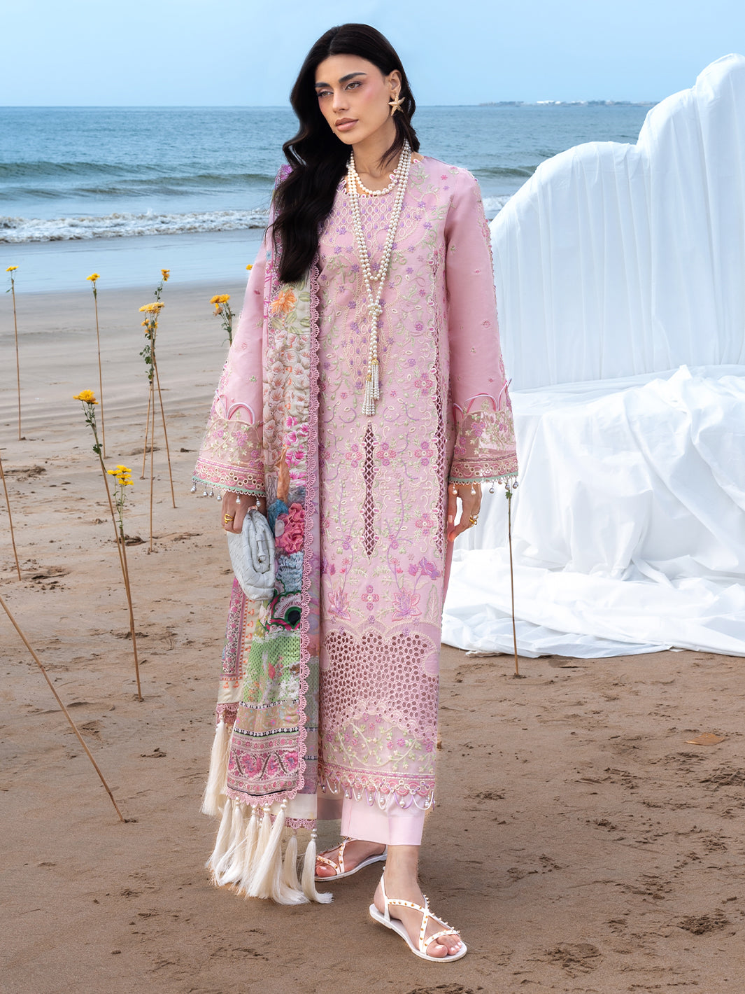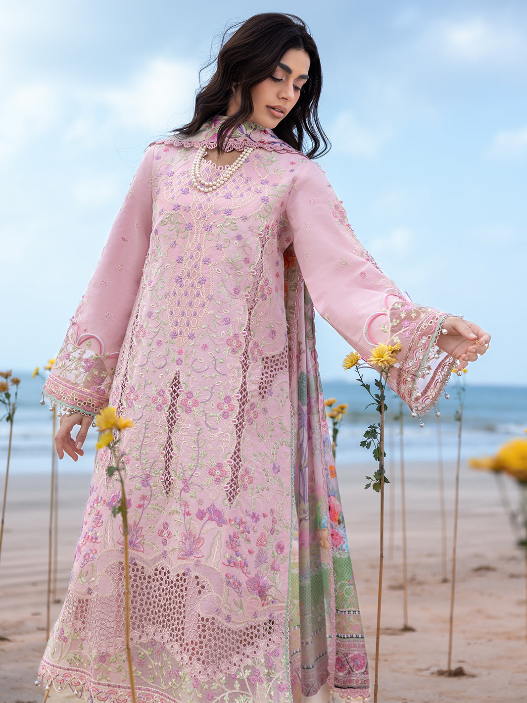 Summary: Experience the epitome of summer elegance with the Mahnur Sirene Luxury Lawn S-012. This exquisite Pakistani Suit features a fully embroidered Lawn shirt in a soft, romantic Pink hue, perfect for beating the heat in style. The intricate thread work and delicate cut-out details on the shirt front exude sophistication, making it an ideal choice for Party Wear or festive Eid gatherings during the Spring/Summer season. Complemented by a vibrant printed Silk dupatta that adds a touch of luxury, this unstitched dress material allows for tailored perfection. Whether for a daytime event or a casual formal meetup, this breathable ensemble offers a blend of traditional grace and modern fashion. Shop this authentic ethnic wear online to elevate your wardrobe.