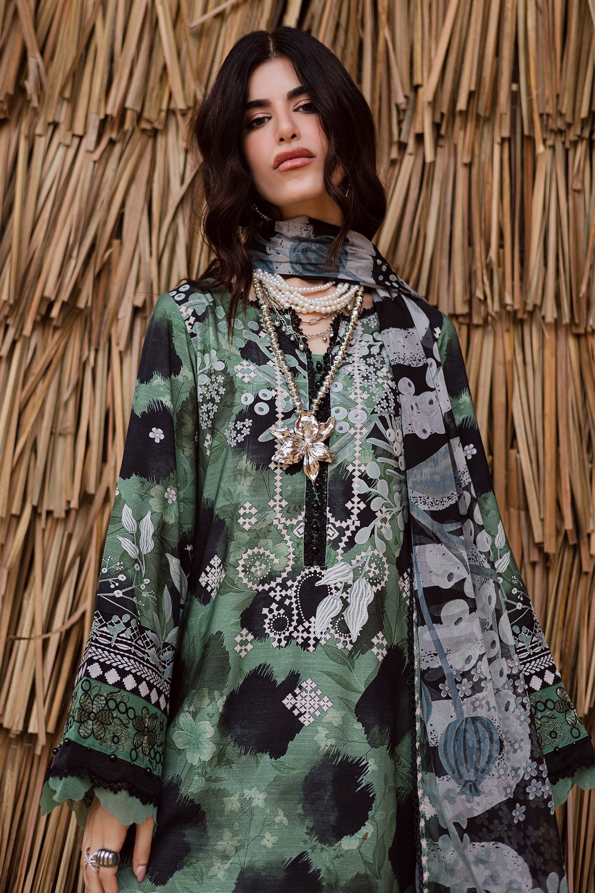 Fabric: Embroidered And Printed Viscose Slub Linen Shirt Embroidered And Printed Chiffon Dupatta Dyed Viscose Trouser |