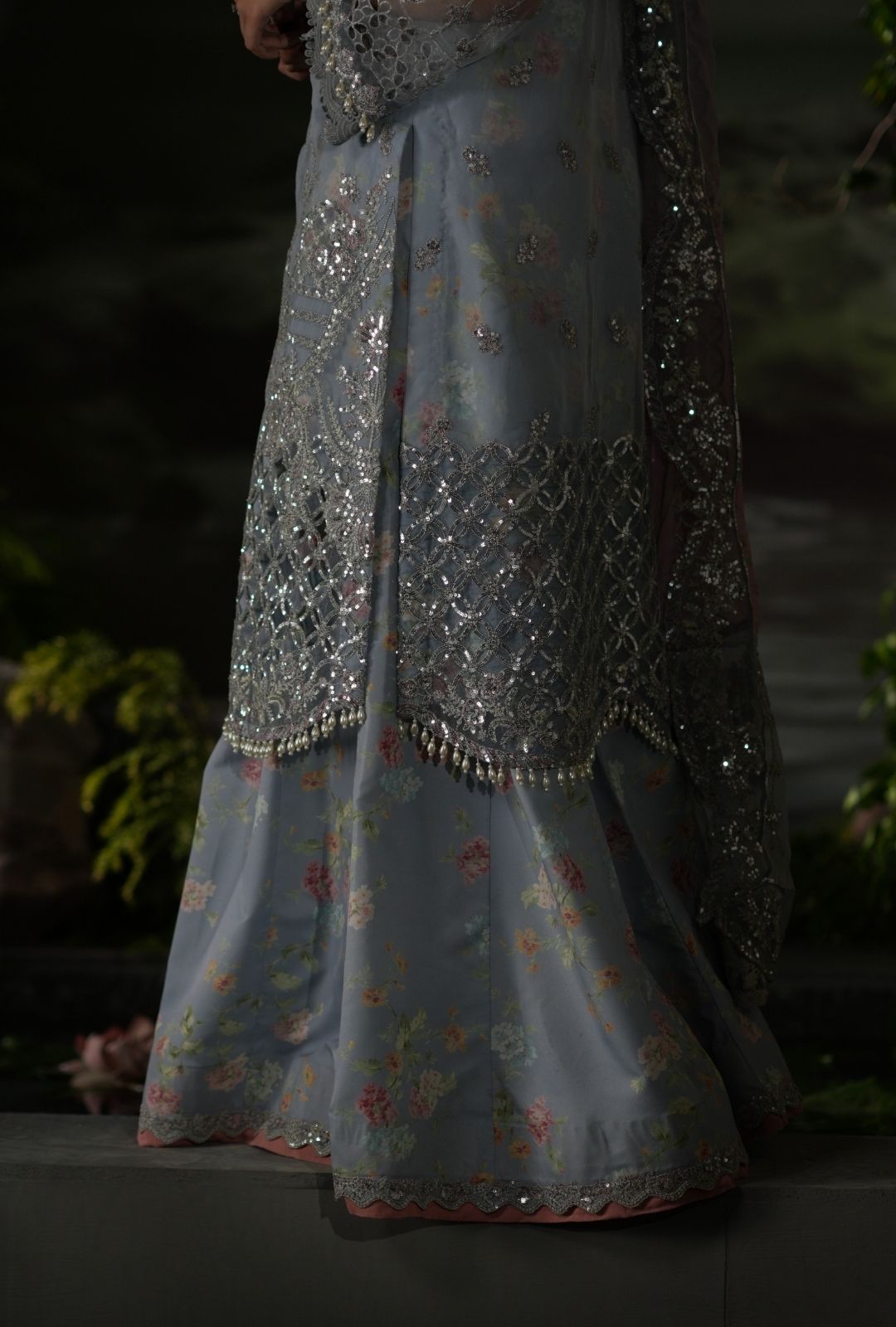 Summary: Embrace ethereal elegance with the 'Mahjabeen' Pakistani suit from AJR's 'Dastan e Ishq' collection. This exquisite formal wear features a stunning lavender organza shirt, meticulously detailed with intricate resham and sequin embroidery across the front, back, and sleeves. The lightweight and airy organza fabric makes it a perfect choice for Spring/Summer festivities. The luxurious embellishments and sophisticated silhouette make this ethnic wear ideal for grand occasions like weddings and formal parties. A timeless piece of festive clothing, this unstitched Pakistani dress is designed to make a statement at any celebratory event.