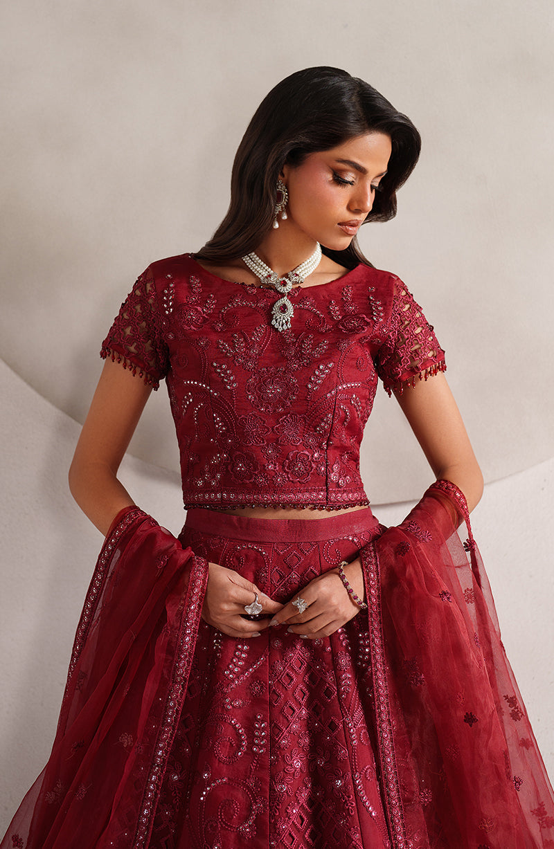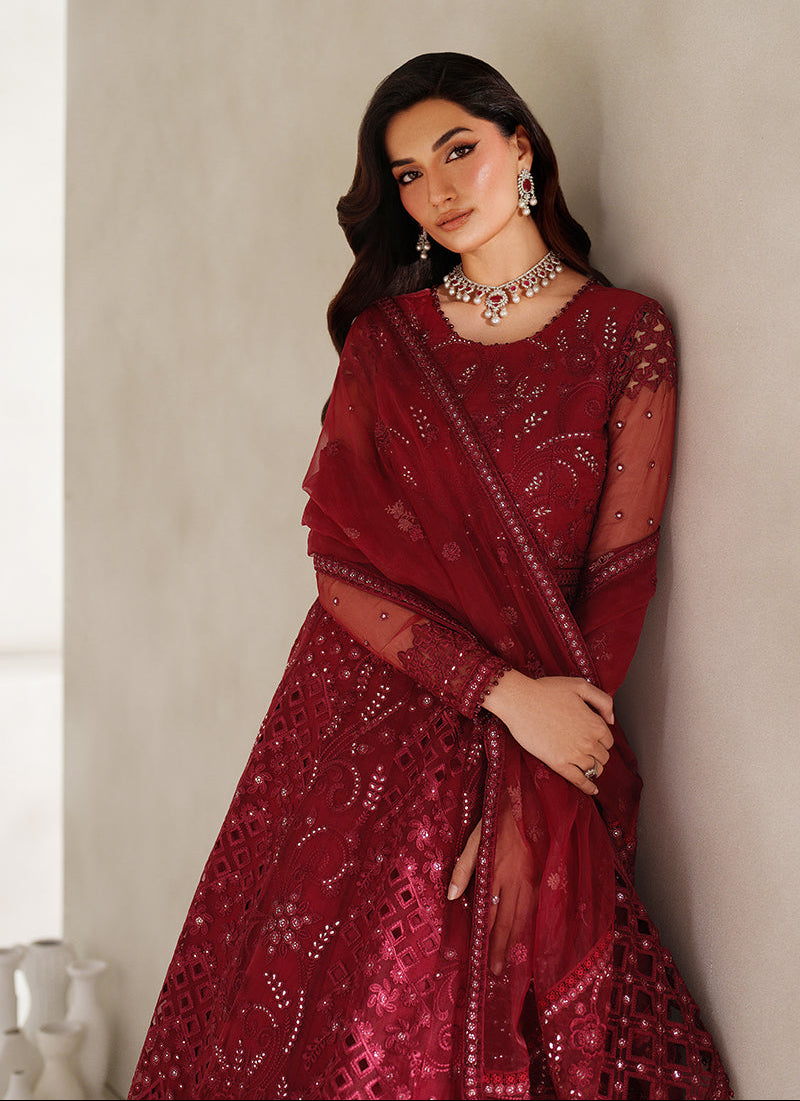 Summary: Step into regal elegance with this Zarif luxury formal Pakistani suit in a captivating maroon hue. This unstitched masterpiece is crafted from delicate organza, featuring intricate embroidery and shimmering foil work that adorns the entire shirt. The lightweight and breathable nature of the organza fabric makes it an excellent choice for Spring/Summer weddings and grand events. The deep maroon color is culturally significant for wedding celebrations, making this ethnic wear a perfect choice for a Barat or as a luxurious wedding guest outfit. This festive dress promises a grand statement at any formal occasion.