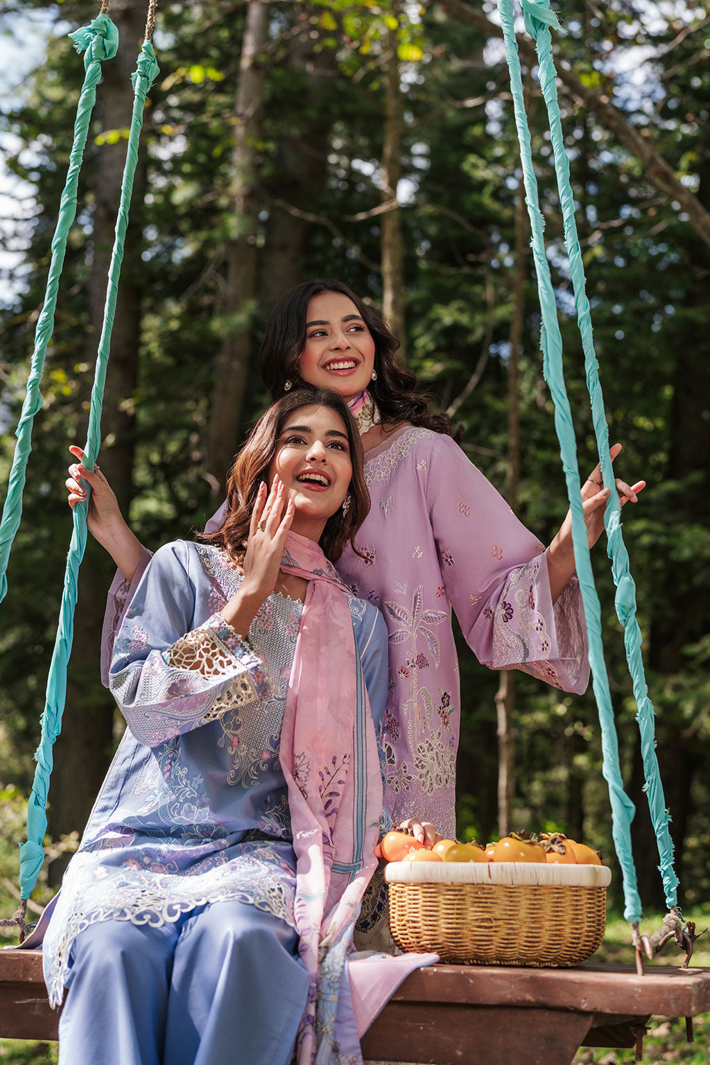 Summary: Embrace timeless elegance with the Afsanah Pine Tale Essential Lawn suit. This stunning Pakistani dress is presented in a serene lavender hue, crafted from premium lawn fabric perfect for the Spring/Summer season. The kameez features intricate embroidery on the front, back, and sleeves, enhanced by an organza border for a refined finish. Paired with a luxurious silk digital printed dupatta, this unstitched ethnic wear outfit offers breathable comfort and sophisticated style. It's an ideal choice for Eid celebrations, formal daytime events, or any festive gathering where you want to make a graceful statement.
