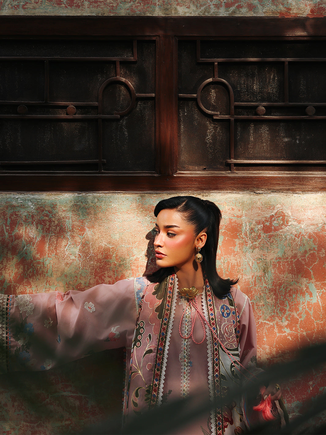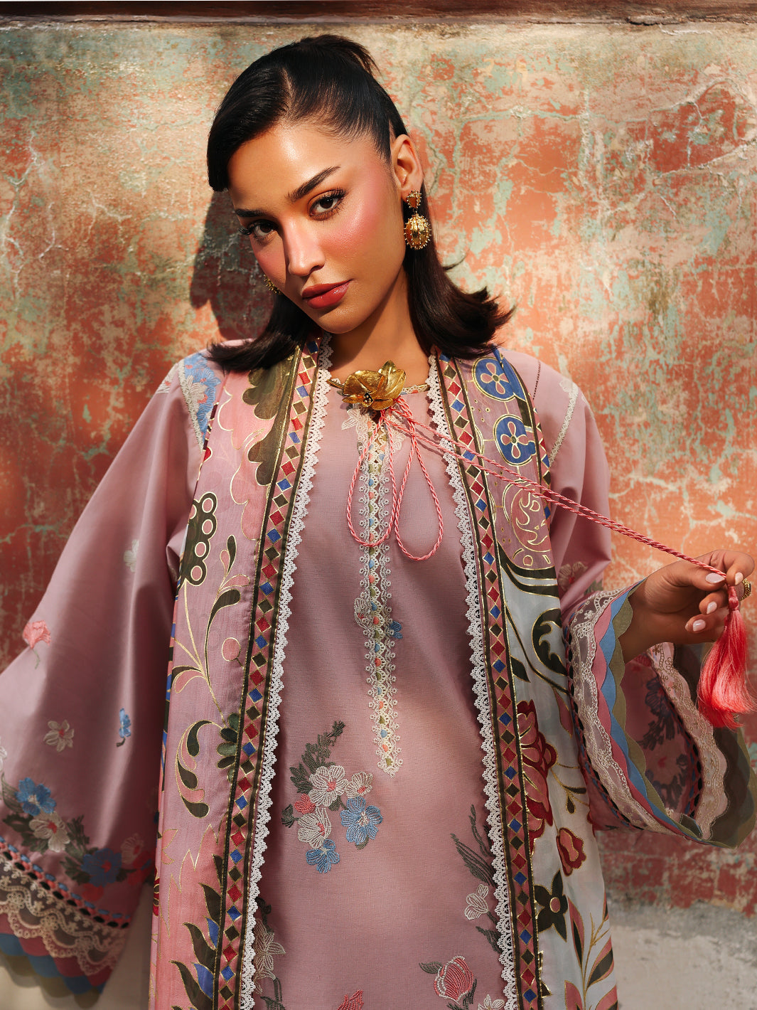 Summary: Embrace timeless elegance with this stunning pink Pakistani suit from Bin Ilyas's Lumina Lawn collection. Crafted from premium dyed lawn, this unstitched dress is designed for breathability and comfort, making it a perfect summer outfit. The kameez features exquisite embroidery on the front panels and sleeves, complemented by delicate organza lace detailing. This sophisticated Pakistani lawn dress is a beautiful example of ethnic wear, blending traditional craftsmanship with contemporary style. Its graceful design makes it an ideal choice for formal wear, Eid festivities, or daytime parties.