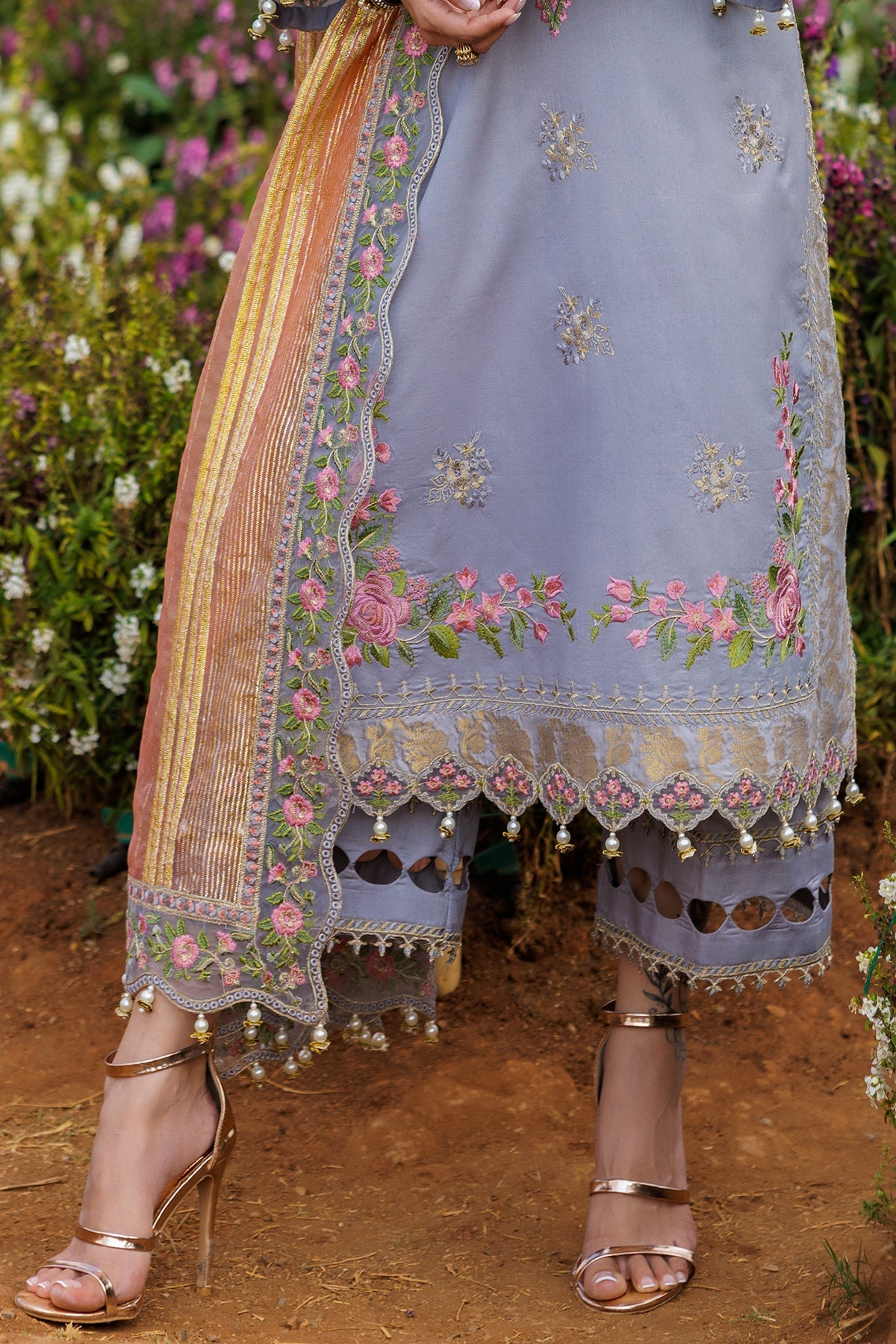 Fabric: Our Jacquard Lawn Festive Edit showcases airy textures, detailed embroideries, and a soothing summer palette perfect for Eid festivities with a modern yet cultural appeal. Embroidery Dyed Lawn Front 1.25 Meter Dyed Lawn Back 1.25 Meter Embroidery Dyed Lawan Sleeves 26 inchEmbroidery Front and Back Daman Patti 1.50 MeterEmbroidery Back Motif 1 PcsEmbroidery Front Neck 1 PcsEmbroidery Chok and Trouser Patti 6 MeterDyed Lawn Jacquard Finishing 1 MeterDyed Cotton Trouser 1.75 MeterEmbroidery Dupatta Pallu Patti 2.50 Meter Embroidery Dyed Organza Zari Dupatta 2.50 Meter Color: Gray |