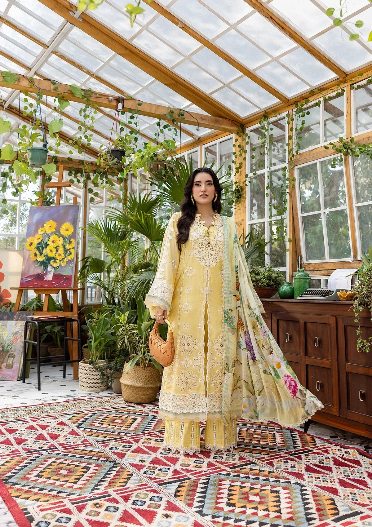 Summary: Embrace effortless elegance with the Elaf E.Craft Chikankari Lawn – EEC-2B BUTTER BLOOM, a stunning Pakistani Suit perfect for adding a touch of sunshine to your wardrobe. This unstitched three-piece suit showcases a beautiful butter yellow lawn shirt adorned with delicate chikankari embroidery, creating a captivating interplay of texture and design. The shirt front, back, and sleeves are crafted from high-quality chikankari lawn, ensuring a comfortable and breathable feel, perfect for warmer days. The shirt is further enhanced with an embroidered organza neckline and front daman border, adding a touch of sophistication and intricate detailing. The embroidered organza sleeves border completes the look, providing a balanced and elegant aesthetic. Paired with a vibrant digitally printed chiffon dupatta, measuring a generous 2.5 meters, this ensemble offers versatile styling options. The lightweight chiffon dupatta drapes beautifully and complements the intricate details of the shirt. Solid dyed cambric trousers complete the ensemble, providing comfort and a classic silhouette. This Elaf E.Craft Chikankari Lawn Suit is perfect for a variety of occasions, from casual daytime gatherings to special events. Its cheerful yellow hue makes it an ideal choice for Haldi ceremonies or any spring/summer festivities. Dress it up with statement jewelry and heels for a more formal look, or keep it simple with delicate accessories for everyday elegance. With its blend of traditional craftsmanship and contemporary design, this Pakistani suit is a must-have for any fashion-conscious individual. This unstitched suit allows you to tailor the fit and style to your exact preferences, ensuring a truly personalized and flattering look. Experience the timeless charm of chikankari with this exquisite ensemble.